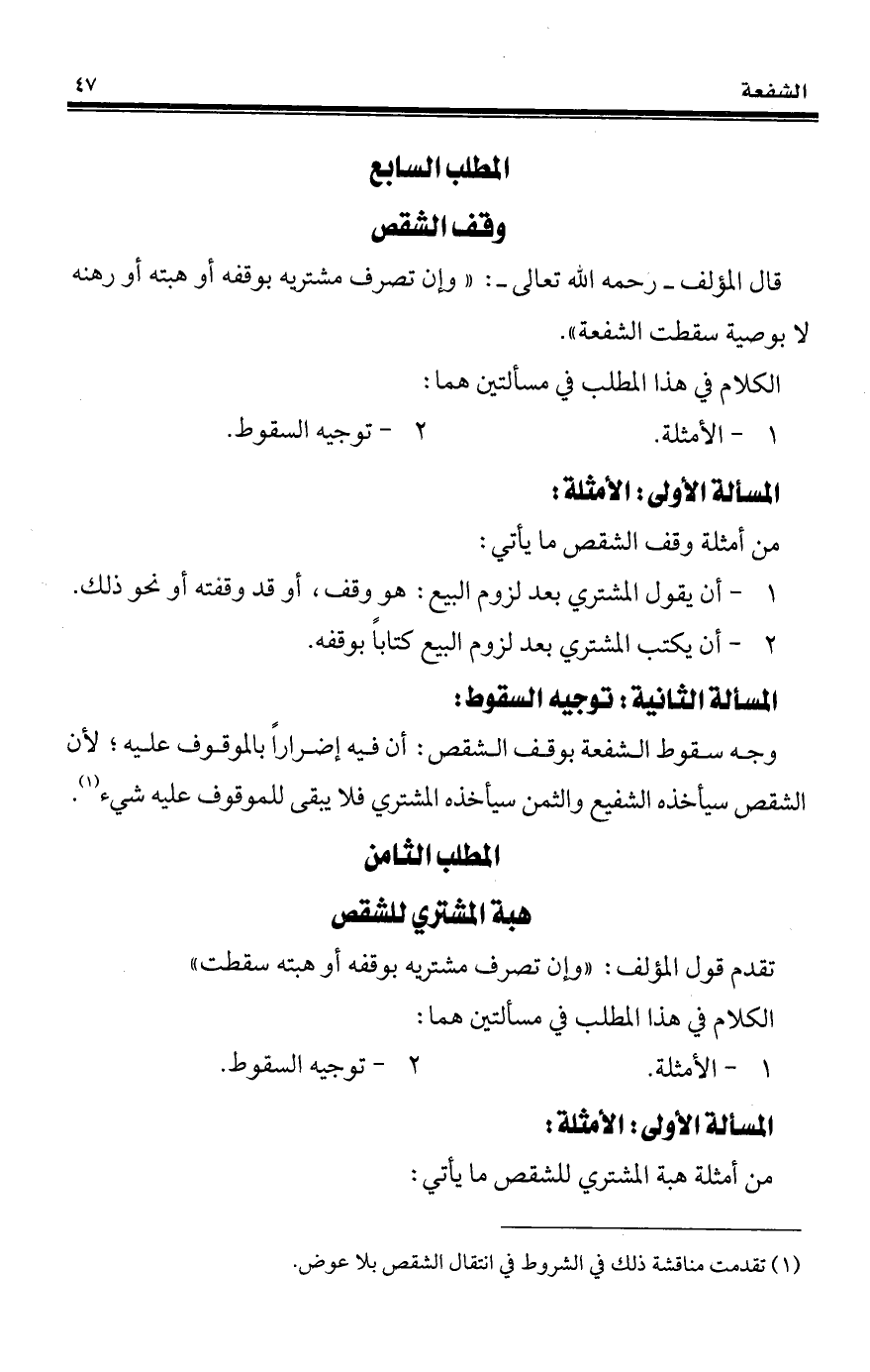 (¬1) تقدمت مناقشة ذلك في الشروط في انتقال الشقص بلا عوض.
