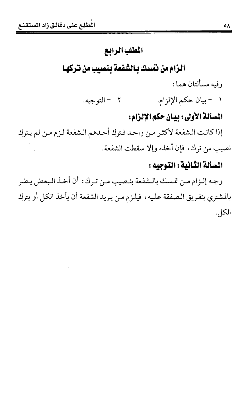 المطلب الرابع إلزام من تمسك بالشفعة بنصيب من تركها