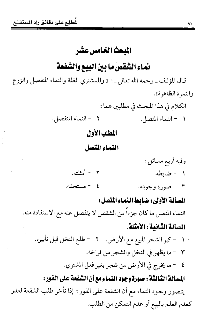 المبحث الخامس عشر نماء الشقص ما بين البيع والشفعة