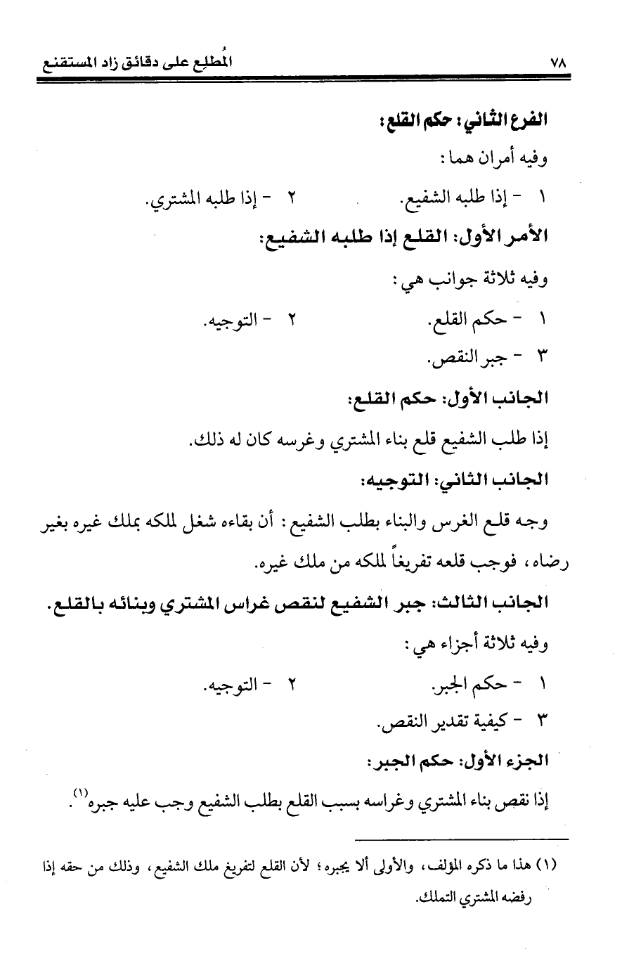 الجانب الثالث: جبر الشفيع لنقص غراس المشتري وبنائه بالقلع.