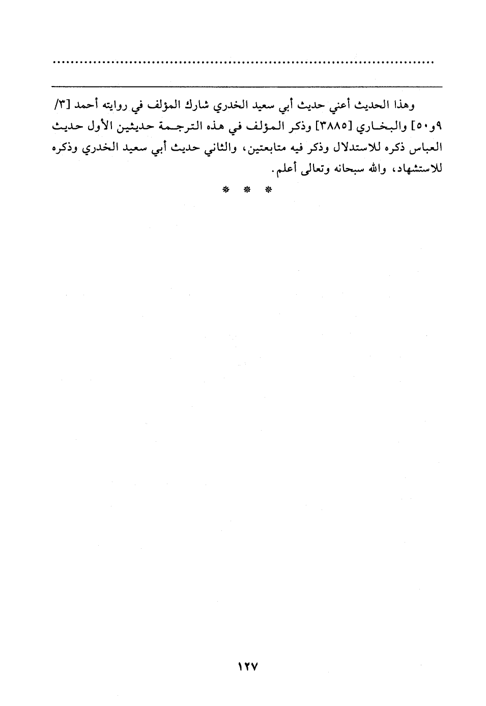 وهذا الحديث أعني حديث أبي سعيد الخدري شارك المؤلف في روايته أحمد [٣/ ٩ و ٥٠] والبخاري [٣٨٨٥] وذكر المؤلف في هذه الترجمة حديثين الأول حديث العباس ذكره للاستدلال وذكر فيه متابعتين، والثاني حديث أبي سعيد الخدري وذكره للاستشهاد، والله سبحانه وتعالى أعلم.