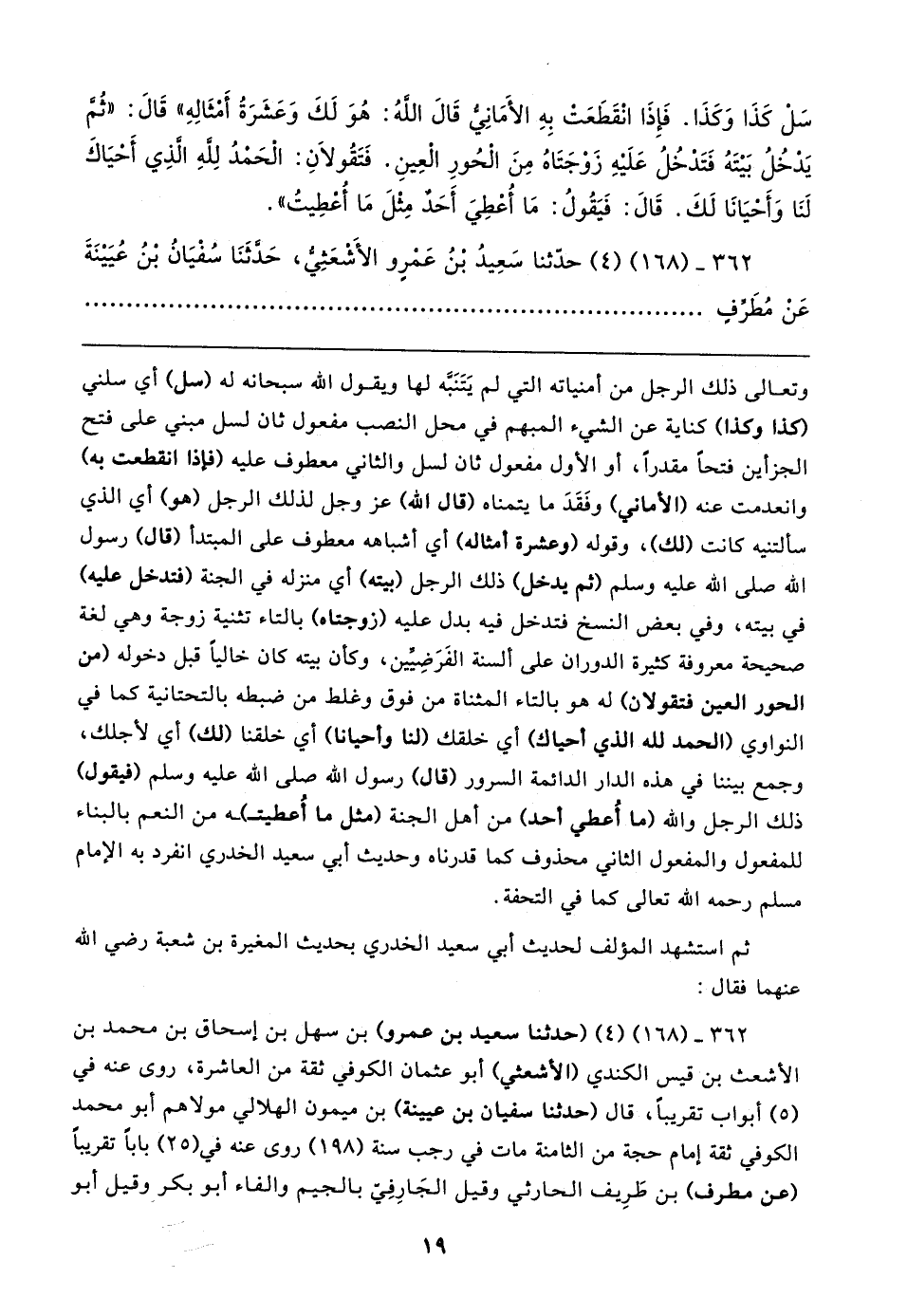 ٣٦٢ - (١٦٨) (٤) حدَّثنا سَعِيدُ بن عَمْرٍو الأَشعَثِيُّ، حَدَّثَنَا سُفْيَانُ بن عُيَينَةَ عَنْ مُطَرِّفٍ