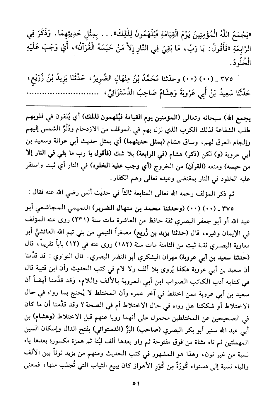 ٣٧٥ - (٠٠) (٠٠) وحدّثنا مُحَمَّدُ بْنُ مِنْهَالٍ الضَّرِيرُ، حَدَّثَنَا يَزِيدُ بْنُ زُرَيعٍ، حَدَّثَنَا سَعِيدُ بْنُ أَبِي عَرُوبَةَ وَهِشَامٌ صَاحِبُ الدَّسْتَوَائِيِّ،