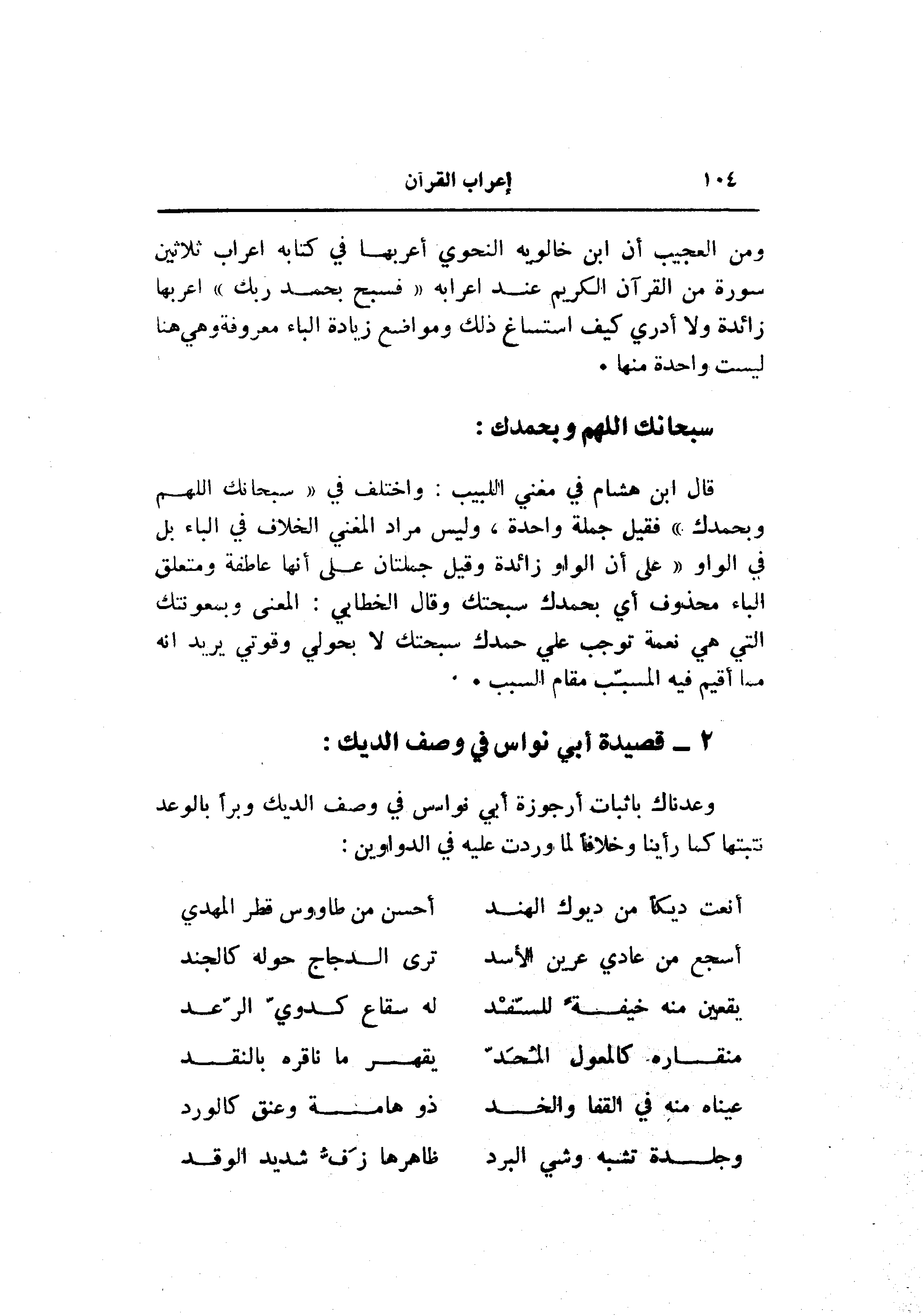 ومن العجيب أن ابن خالويه النحوي أعربها في كتابه اعراب ثلاثين سورة من القرآن الكريم عند إعرابه «فسبح بحمد ربك» أعربها زائدة ولا أدري كيف استساغ ذلك ومواضع زيادة الباء معروفة وهي هنا ليست واحدة منها.
