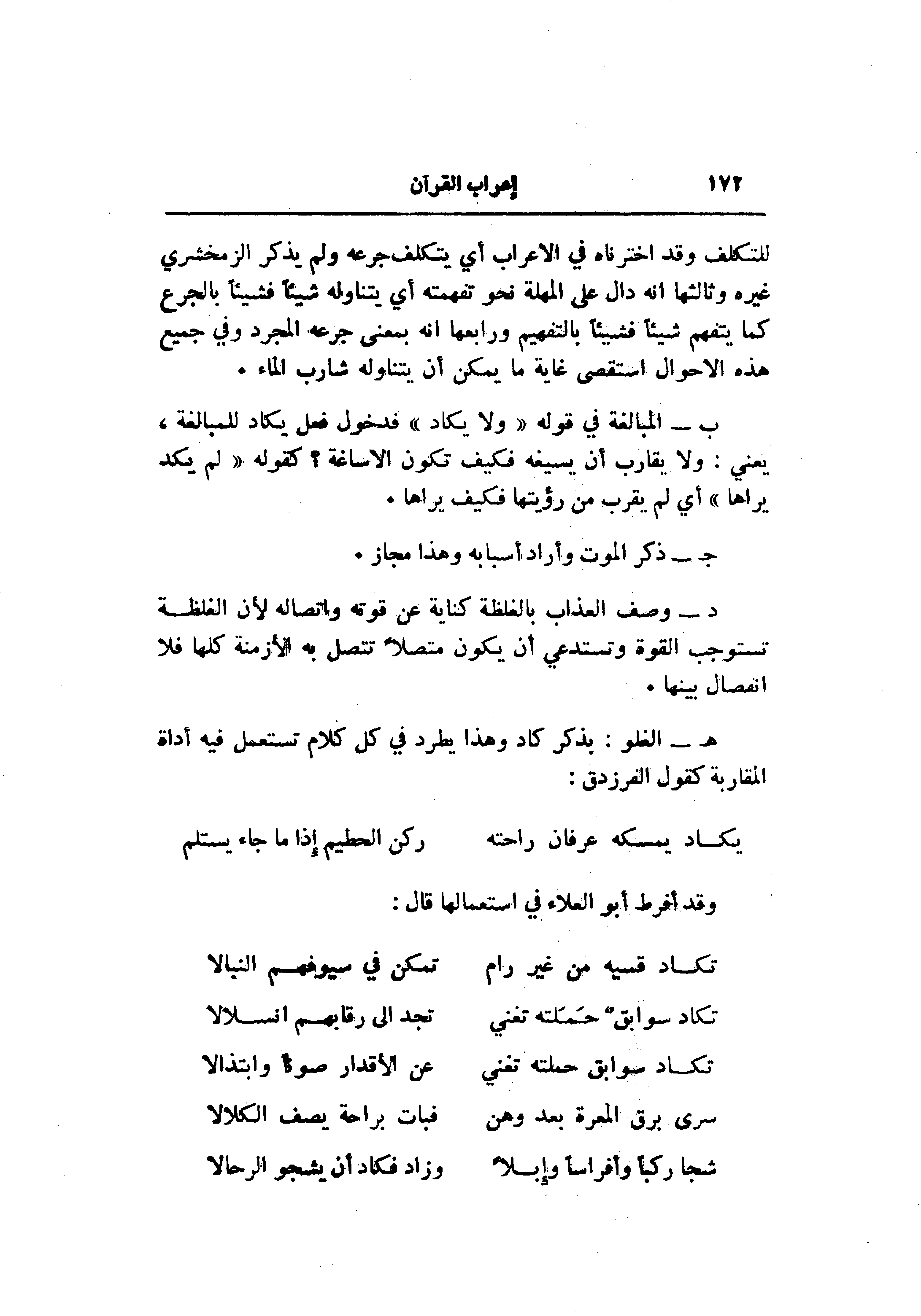 ب- المبالغة في قوله «ولا يكاد» فدخول فعل يكاد للمبالغة، يعني: ولا يقارب أن يسيغه فكيف تكون الاساغة؟ كقوله «لم يكد يراها» أي لم يقرب من رؤيتها فكيف يراها.