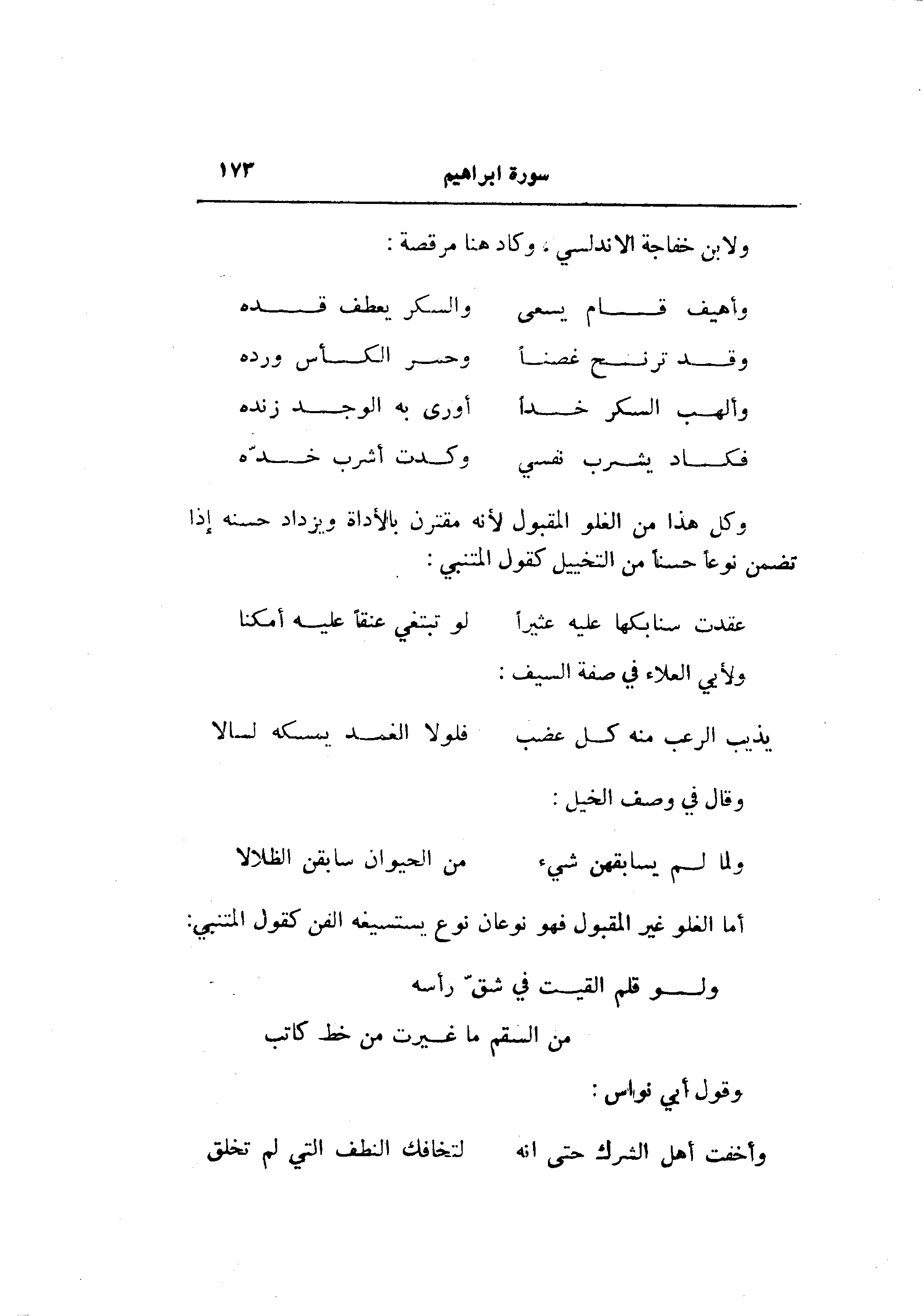ولا بن خفاجة الاندلسي. وكاد هنا مرقصة: