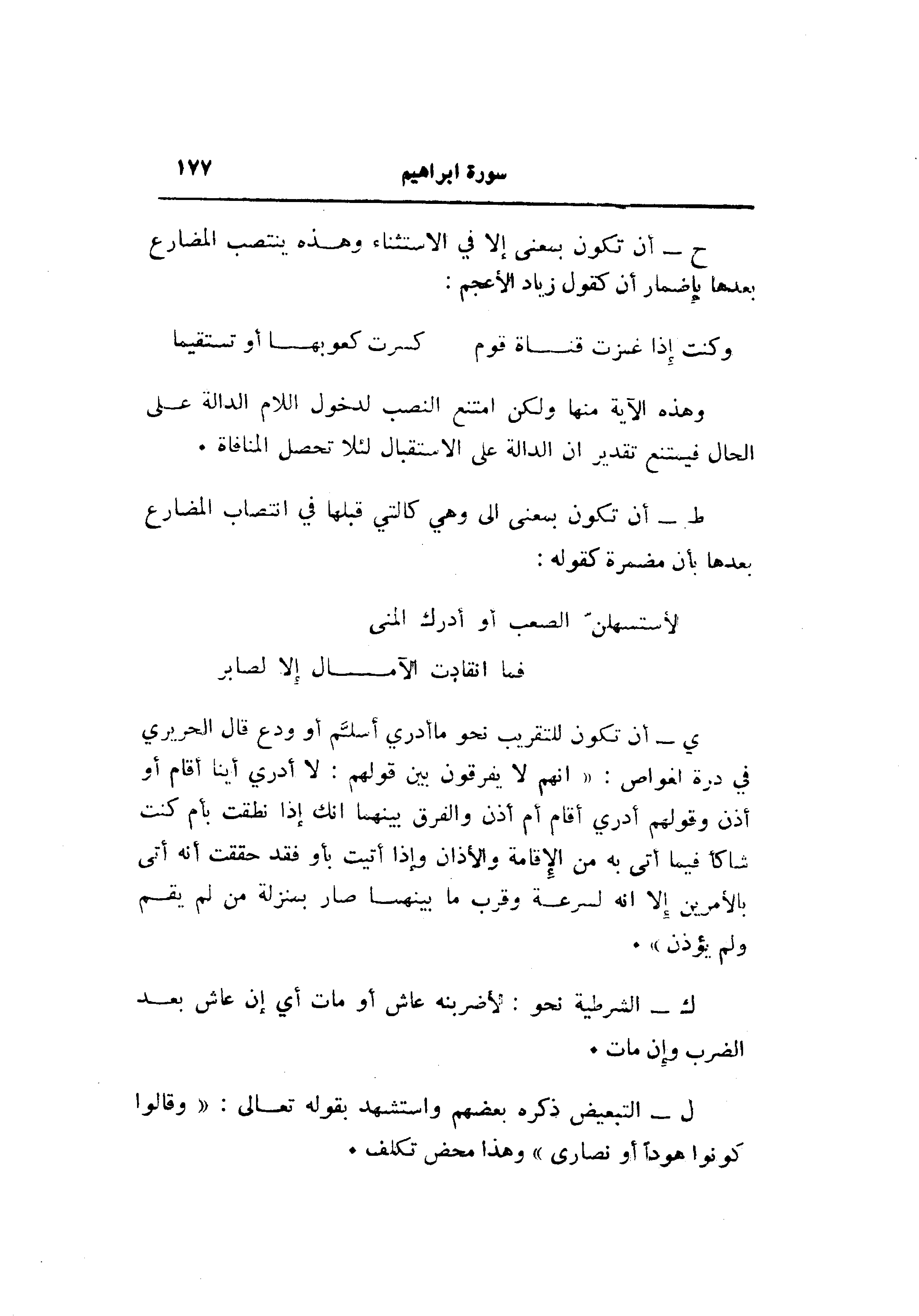 ح- أن تكون بمعنى إلا في الاستثناء وهذه ينتصب المضارع بعدها بإضمار أن كقول زياد الأعجم: