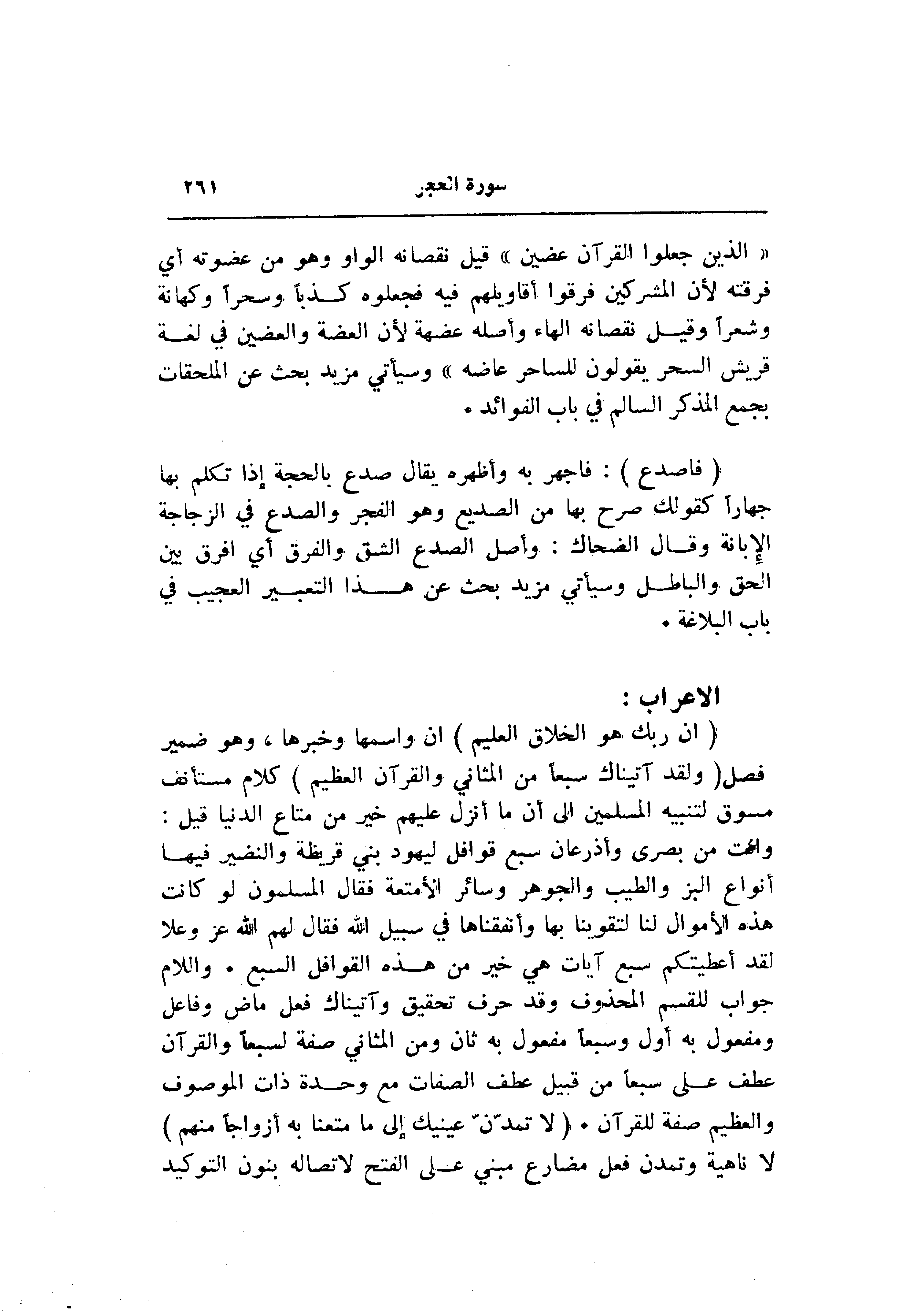 (إِنَّ رَبَّكَ هُوَ الْخَلَّاقُ الْعَلِيمُ) ان واسمها وخبرها، وهو ضمير فصل (وَلَقَدْ آتَيْناكَ سَبْعاً مِنَ الْمَثانِي وَالْقُرْآنَ الْعَظِيمَ) كلام مستأنف مسوق لتنبيه المسلمين الى أن ما أنزل عليهم خبر من متاع الدنيا قيل: