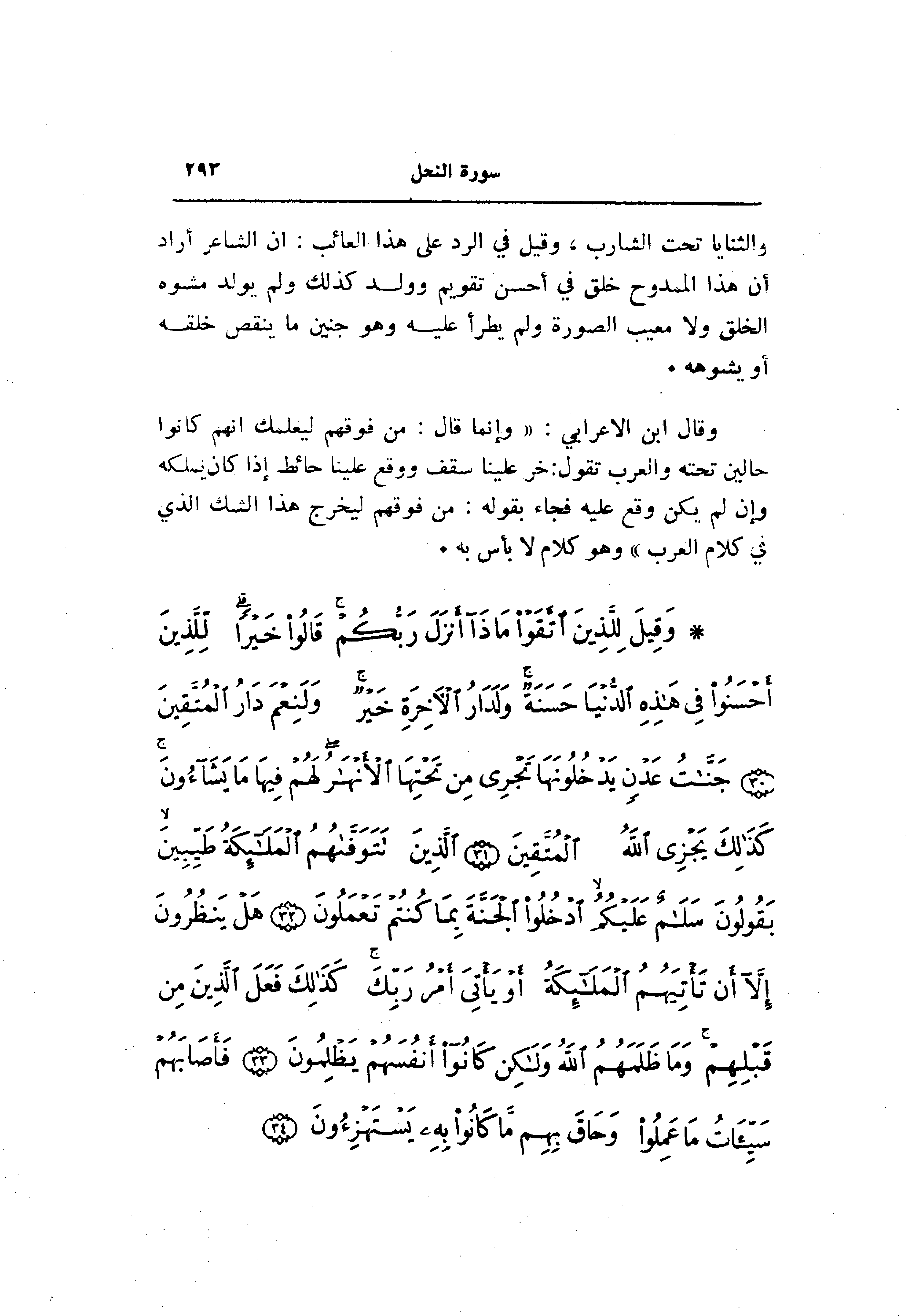 وقال ابن الاعرابي: «وإنما قال: من فوقهم ليعلمك انهم كانوا حالين تحته والعرب تقول: خر علينا سقف ووقع علينا حائط إذا كان يملكه وإن لم يكن وقع عليه فجاء بقوله: من فوقهم ليخرج هذا الشك الذي في كلام العرب» وهو كلام لا بأس به.