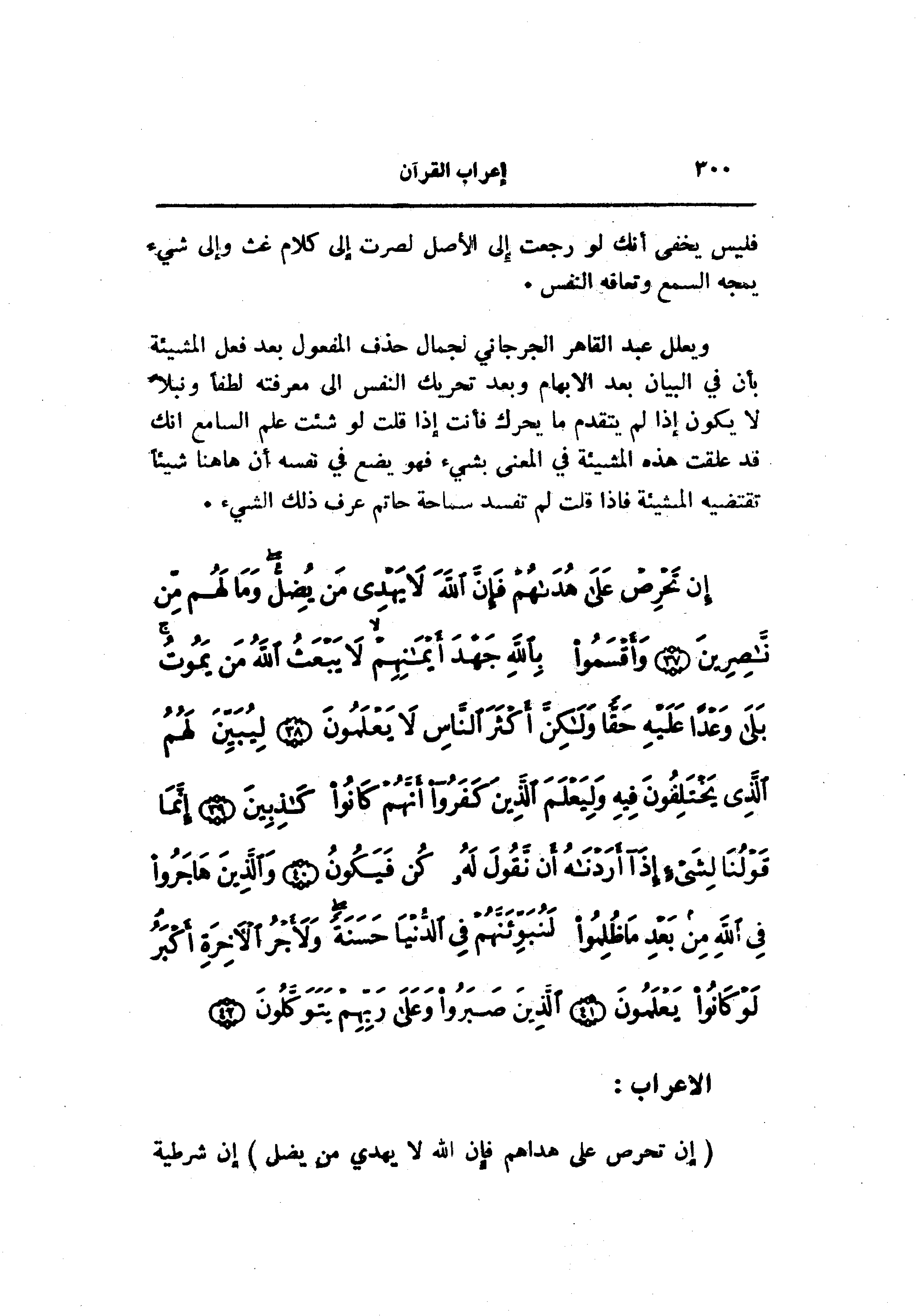 ويعلل عبد القاهر الجرجاني لجمال حذف المفعول بعد فعل المشيئة بأن في البيان بعد الإبهام وبعد تحريك النفس الى معرفته لطفا ونبلا لا يكون إذا لم يتقدم ما يحرك فأنت إذا قلت لو شئت علم السامع انك قد علقت هذه المشيئة في المعنى بشيء فهو يضع في نفسه أن هاهنا شيئا تقتضيه المشيئة فاذا قلت لم تفسد سماحة حاتم عرف ذلك الشيء.