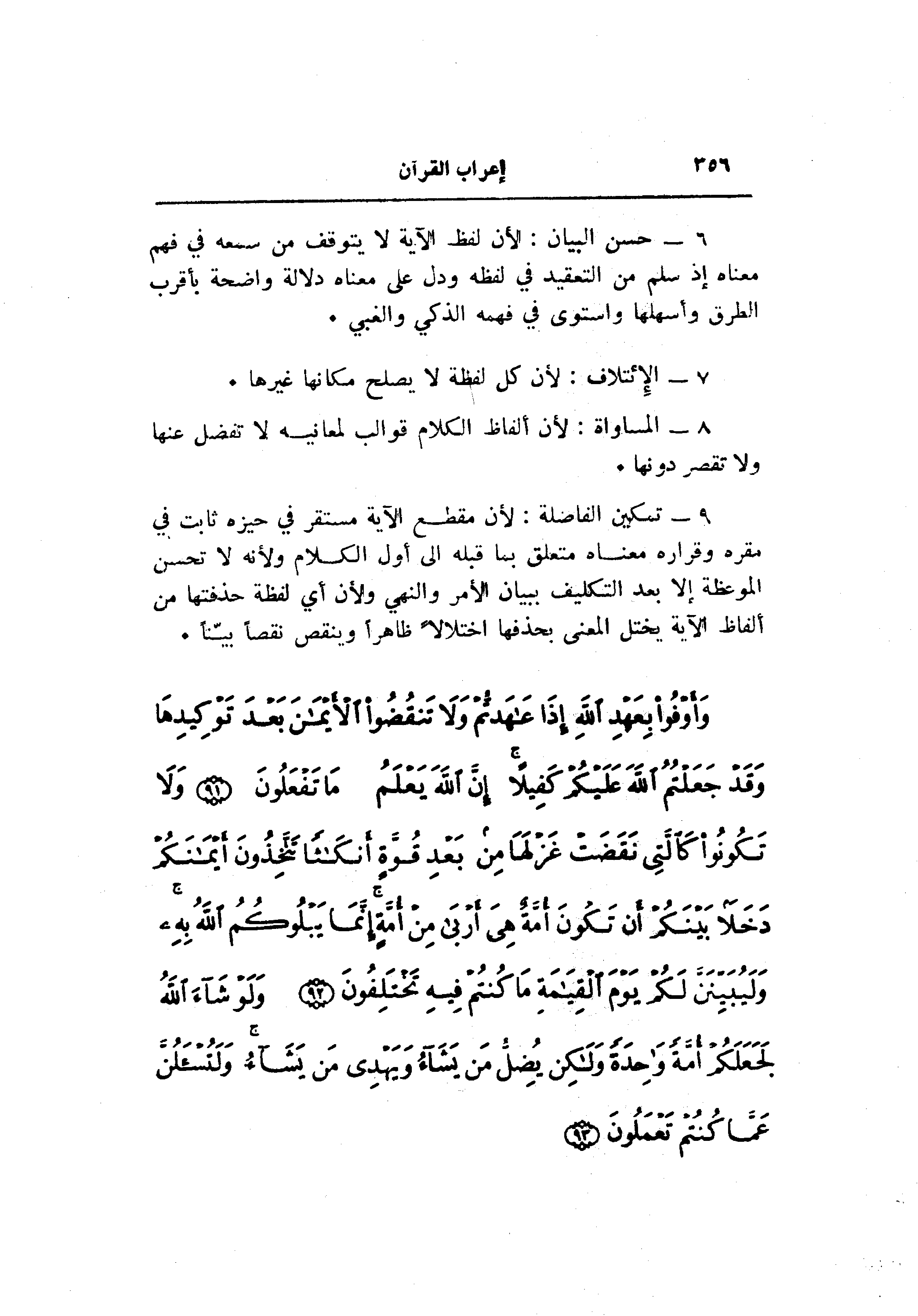 6- حسن البيان: لأن لفظ الآية لا يتوقف من سمعه في فهم معناه إذ سلم من التعقيد في لفظه ودل على معناه دلالة واضحة بأقرب الطرق وأسهلها واستوى في فهمه الذكي والغبي.