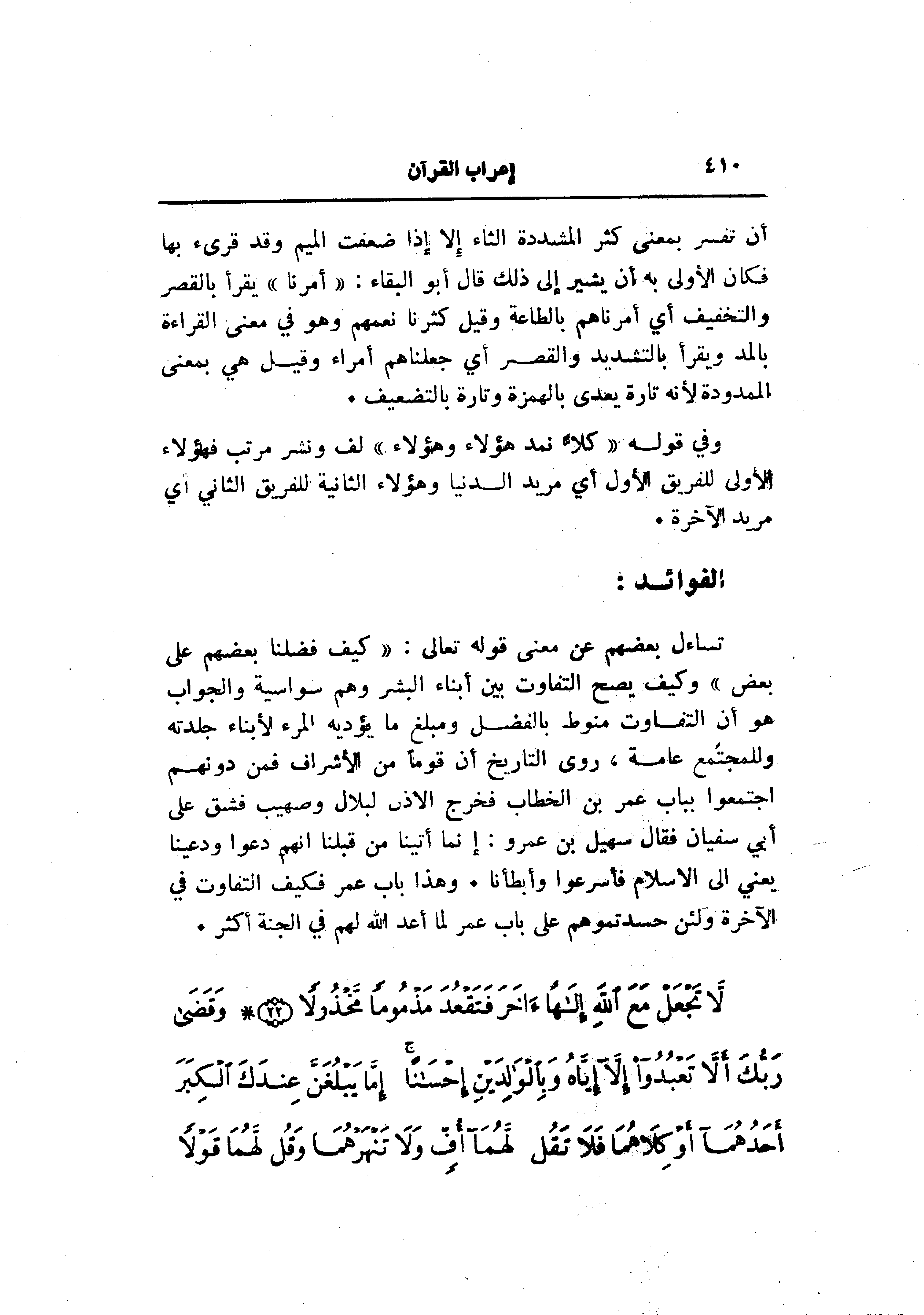 تساءل بعضهم عن معنى قوله تعالى: «كيف فضلنا بعضهم على بعض» وكيف يصح التفاوت بين أبناء البشر وهم سواسية والجواب هو أن التفاوت منوط بالفضل ومبلغ ما يؤديه المرء لأبناء جلدته وللمجتمع عامة، روى التاريخ أن قوما من الأشراف فمن دونهم اجتمعوا بباب عمر بن الخطاب فخرج الاذن لبلال وصهيب فشق على أبي سفيان فقال سهيل بن عمرو: إنما أتينا من قبلنا انهم دعوا ودعينا يعني الى الإسلام فأسرعوا وأبطأنا. وهذا باب عمر فكيف التفاوت في الآخرة ولئن حسدتموهم على باب عمر لما أعد الله لهم في الجنة أكثر.