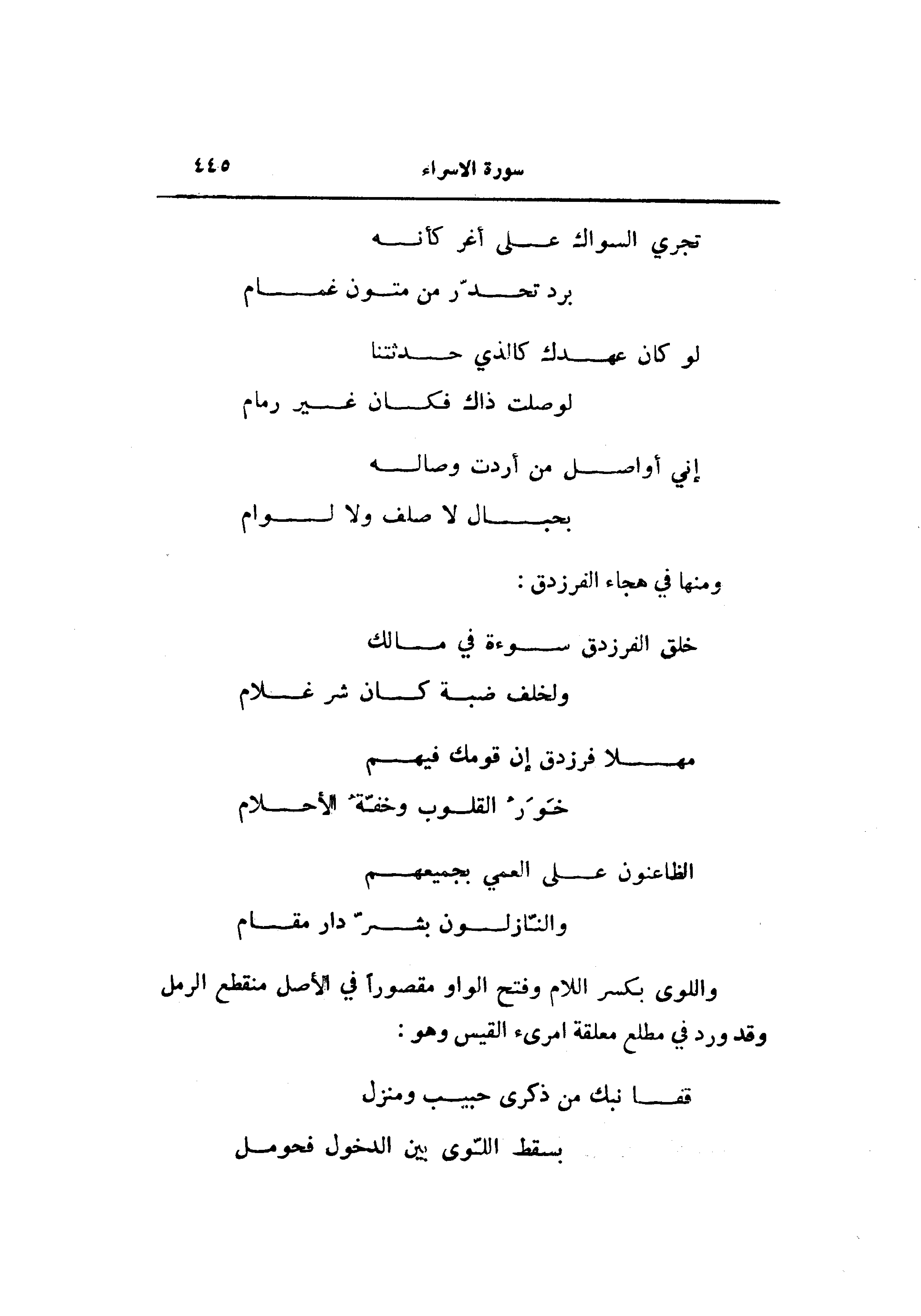 قفا نبك من ذكرى حبيب ومنزل ... بسقط اللّوى بين الدخول فحومل