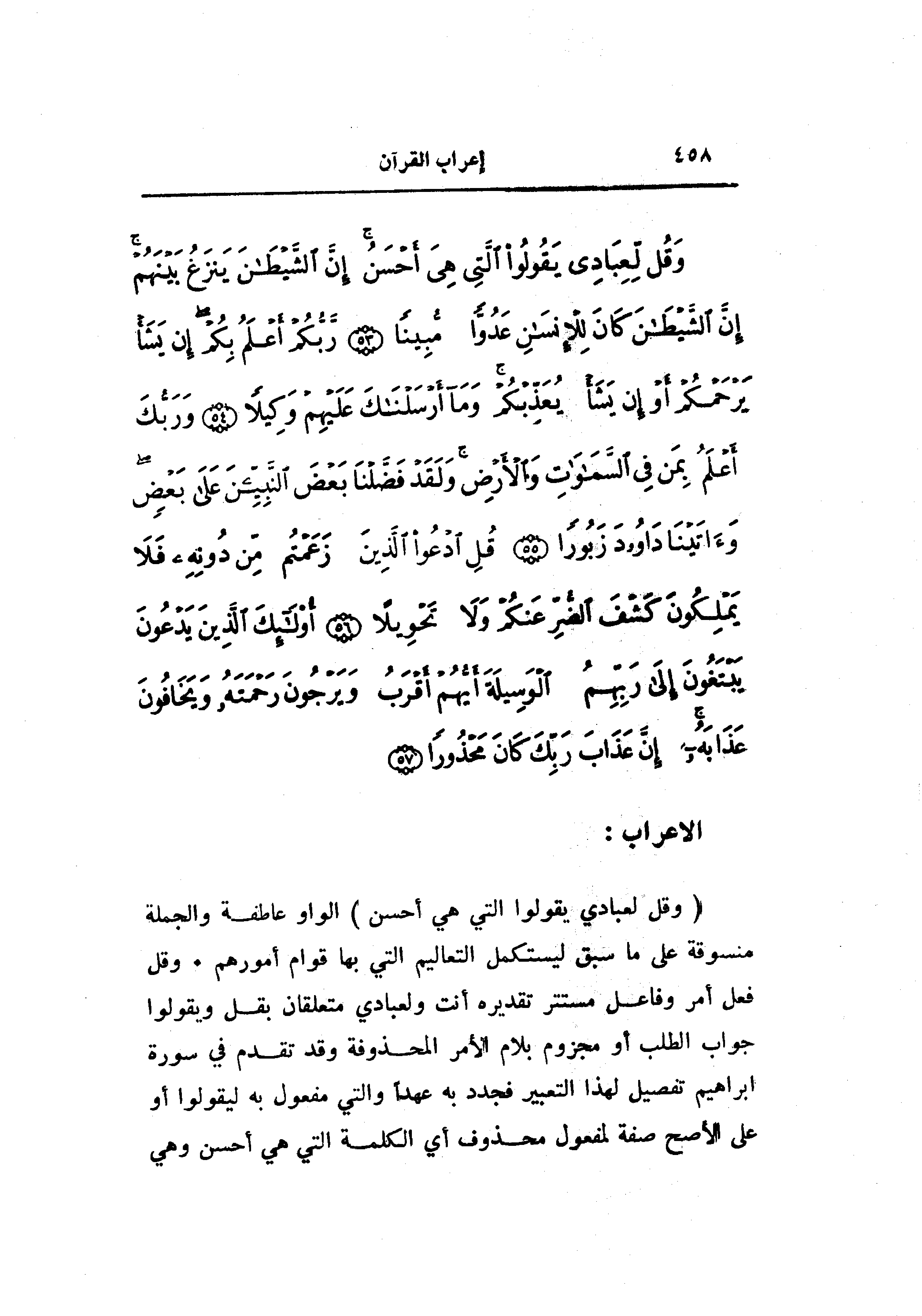 (وَقُلْ لِعِبادِي يَقُولُوا الَّتِي هِيَ أَحْسَنُ) الواو عاطفة والجملة منسوقة على ما سبق ليستكمل التعاليم التي بها قوام أمورهم. وقل فعل أمر وفاعل مستتر تقديره أنت ولعبادي متعلقان بقل ويقولوا جواب الطلب أو مجزوم بلام الأمر المحذوفة وقد تقدم في سورة ابراهيم تفصيل لهذا التعبير فجدد به عهدا والتي مفعول به ليقولوا أو على الأصح صفة لمفعول محذوف أي الكلمة التي هي أحسن وهي