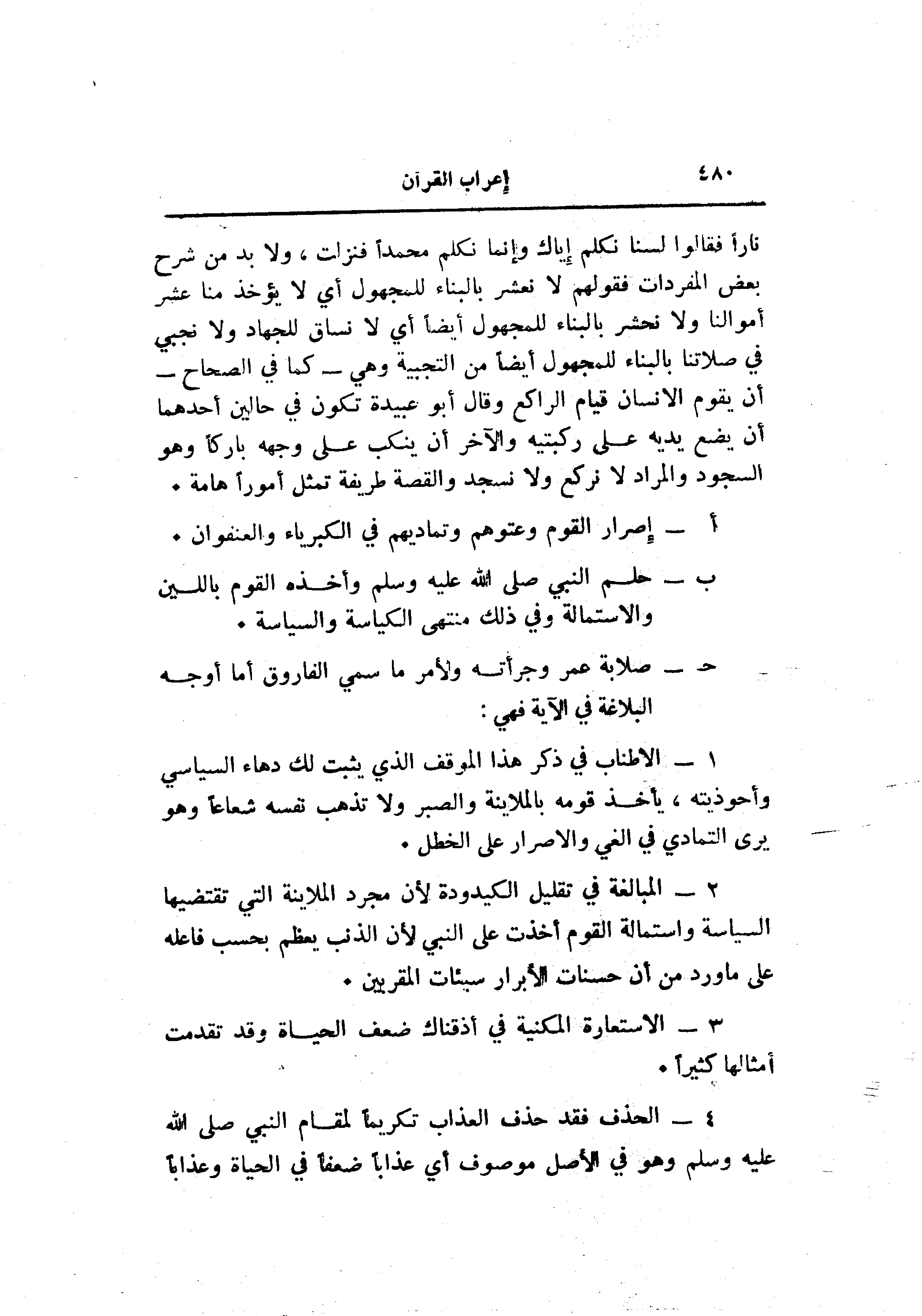 ح- صلابة عمر وجرأته ولأمر ما سمي الفاروق أما أوجه البلاغة في الآية فهي: