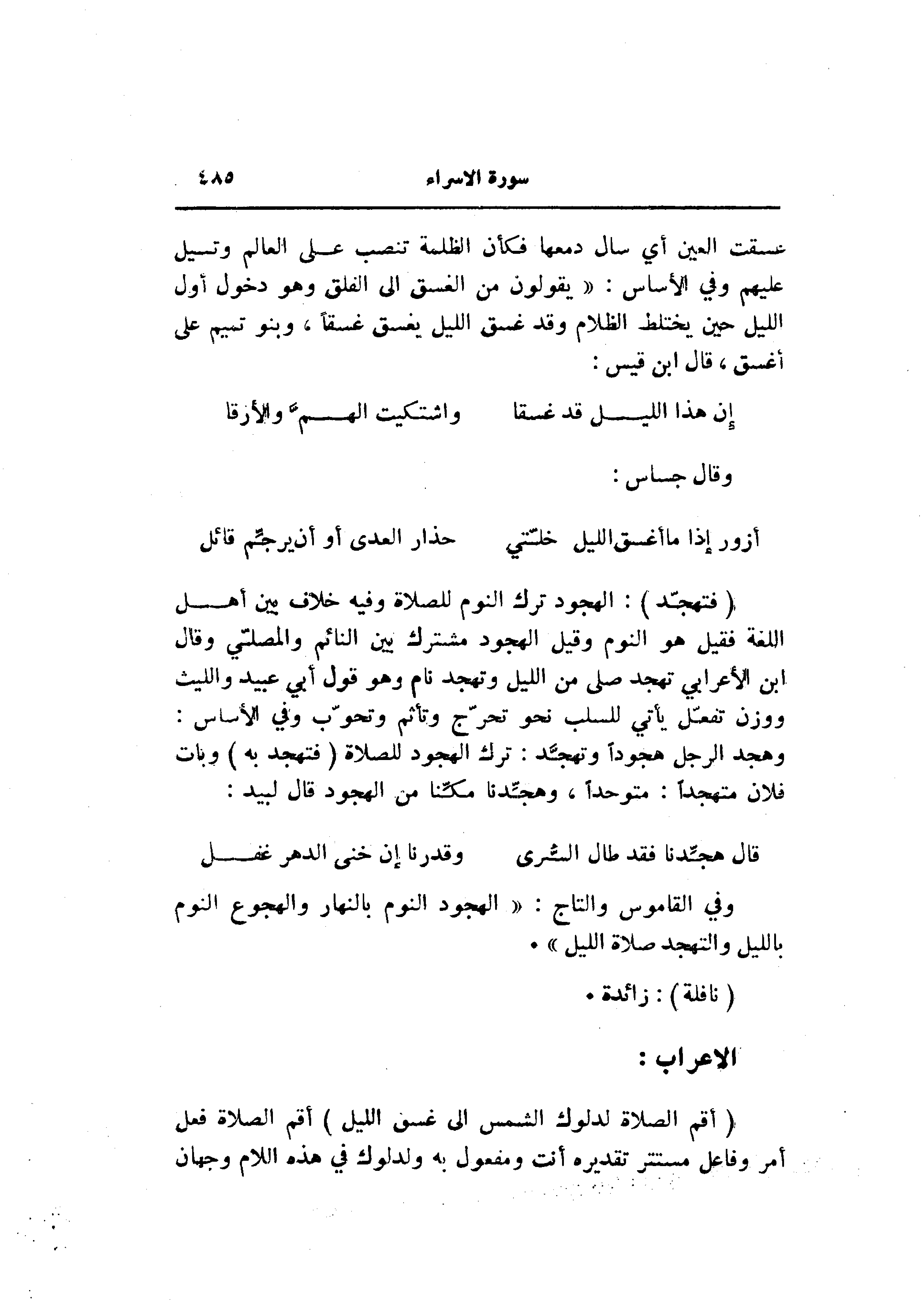 وفي القاموس والتاج: «الهجود النوم بالنهار والهجوع النوم بالليل والتهجد صلاة الليل» .