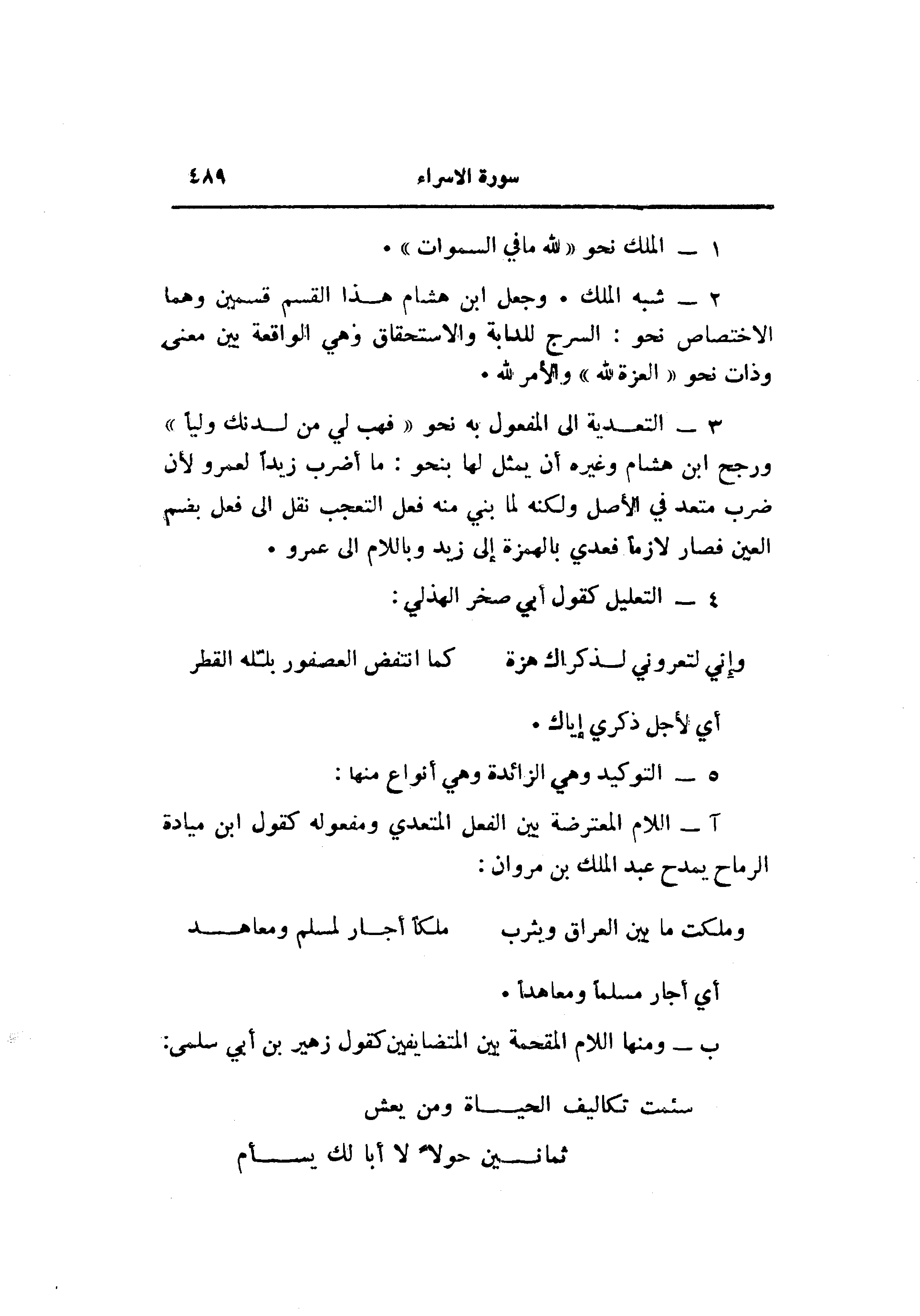 ب- ومنها اللام المقحمة بين المتضايفين كقول زهير بن أبي سلمى:
