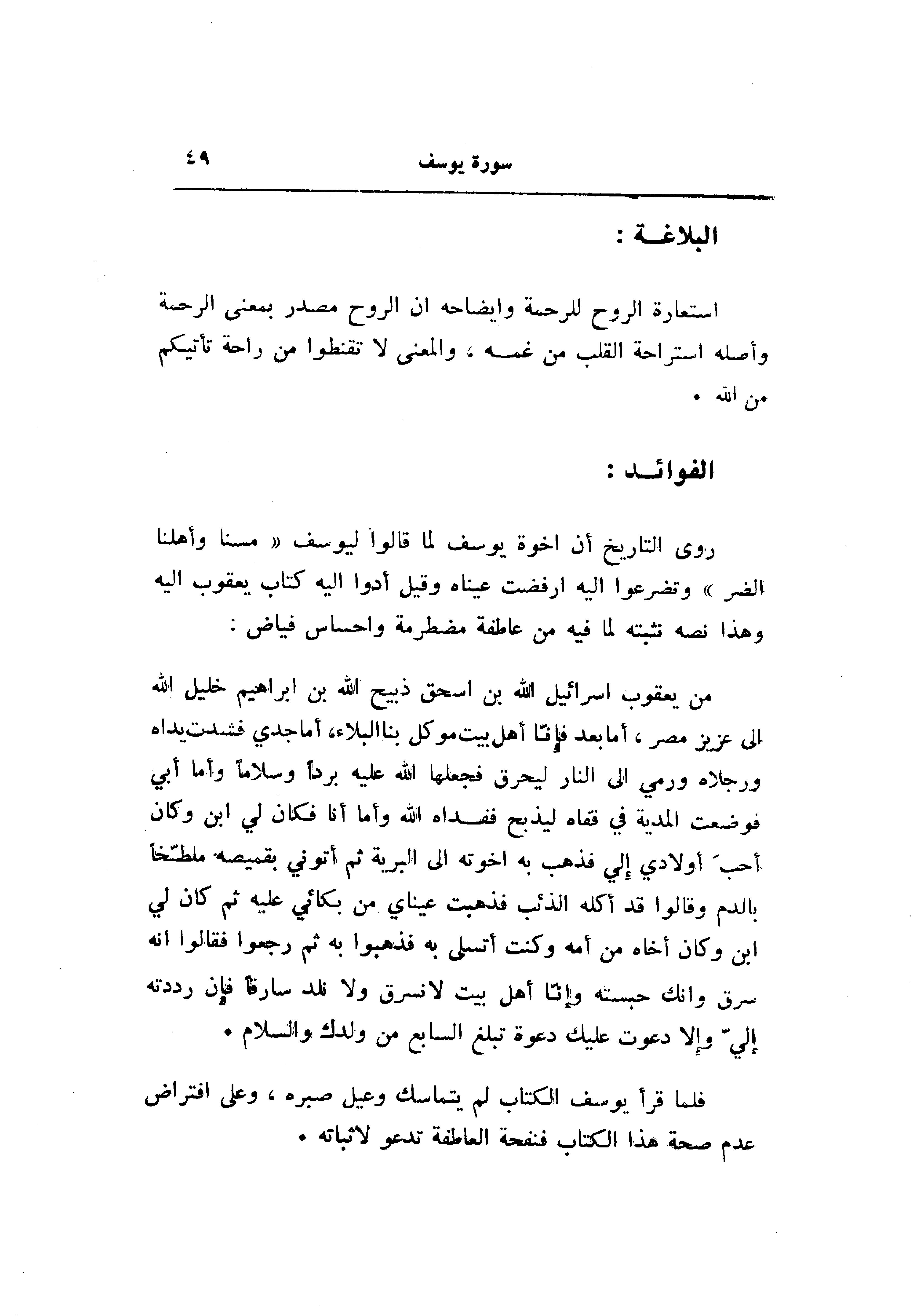فلما قرأ يوسف الكتاب لم يتماسك وعيل صبره، وعلى افتراض عدم صحة هذا الكتاب فنفحة العاطفة تدعو لاثباته.
