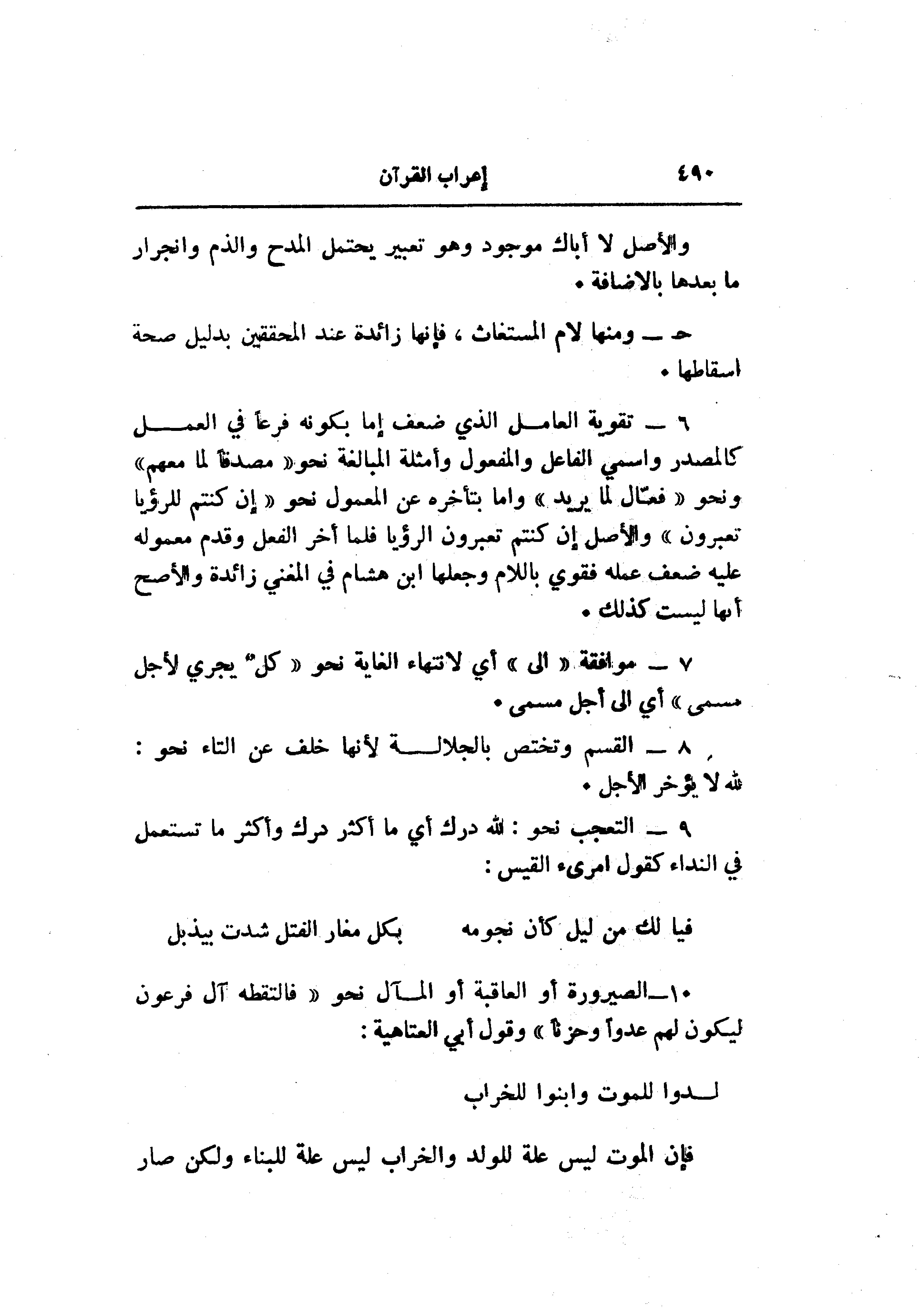 ح- ومنها لام المستغاث، فإنها زائدة عند المحققين بدليل صحة إسقاطها.