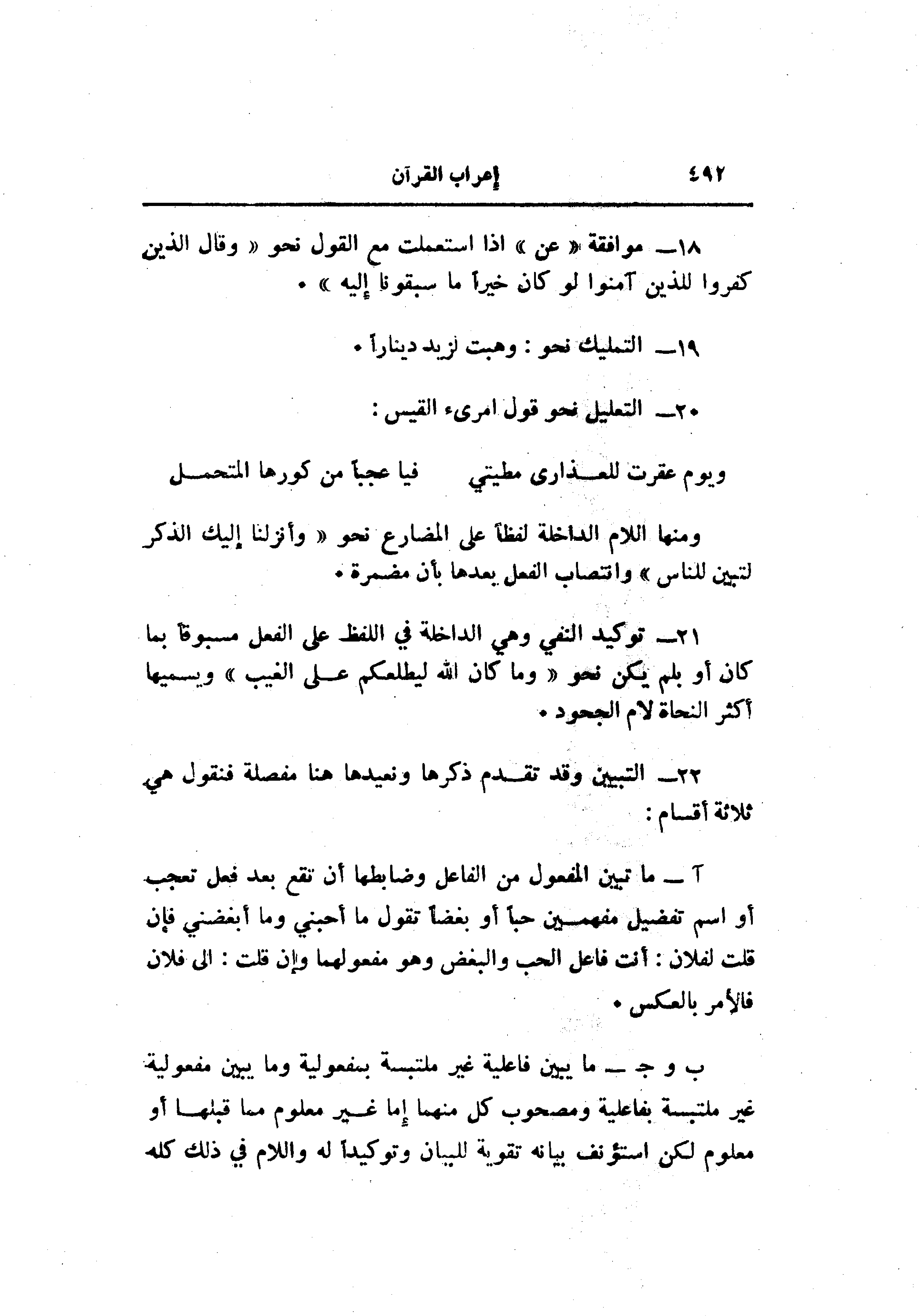 18- موافقة «عن» إذا استعملت مع القول نحو «وقال الذين كفروا للذين آمنوا لو كان خيرا ما سبقونا إليه» .