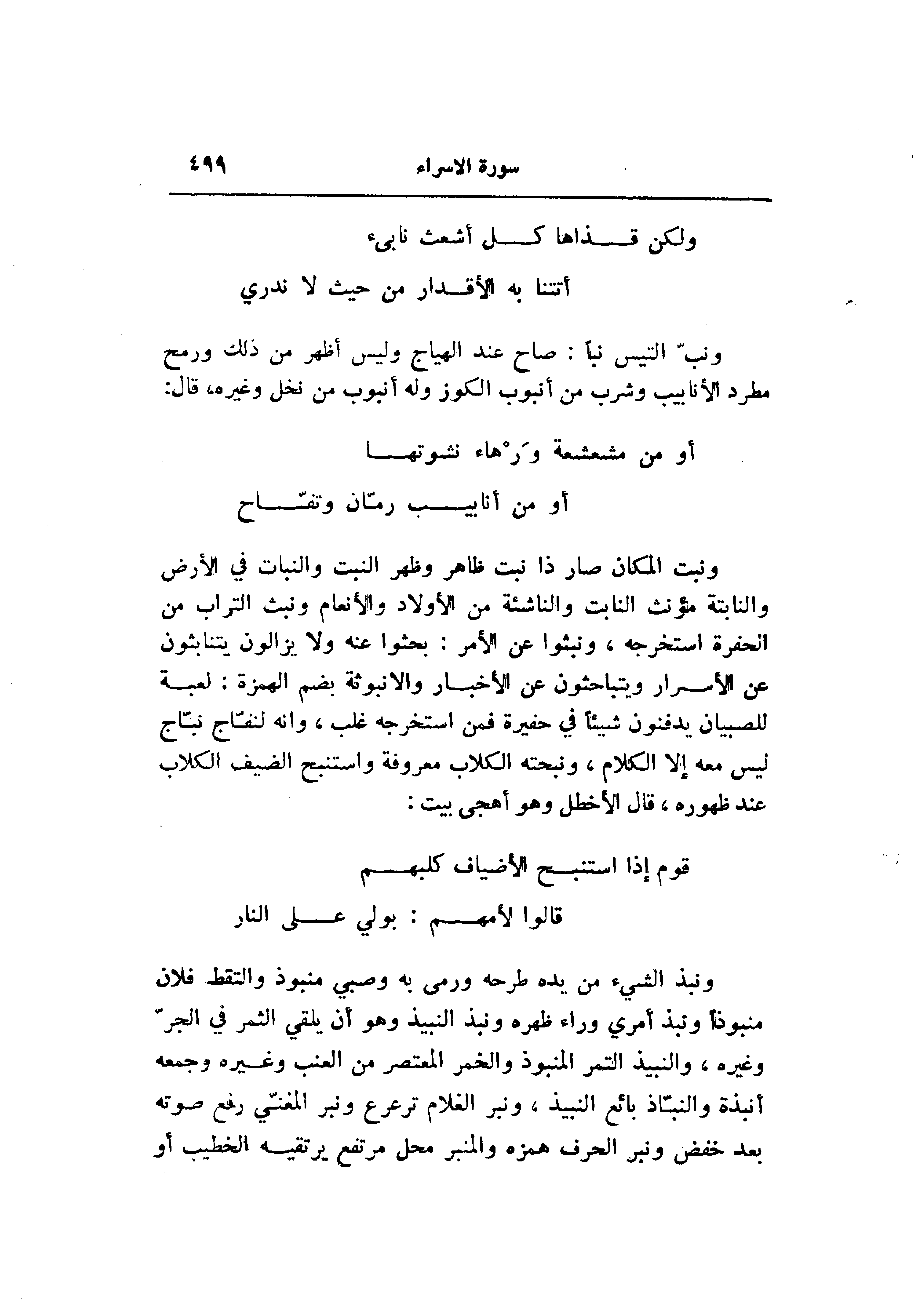 ونبت المكان صار ذا نبت ظاهر وظهر النبت والنبات في الأرض والنابتة مؤنث النابت والناشئة من الأولاد والأنعام ونبث التراب من الحفرة استخرجه، ونبثوا عن الأمر: بحثوا عنه ولا يزالون يتنابثون عن الأسرار ويتباحثون عن الأخبار والانبوثة بضم الهمزة: لعبة للصبيان يدفنون شيئا في حفيرة فمن استخرجه غلب، وانه لنفّاج نبّاج ليس معه إلا الكلام، ونبحته الكلاب معروفة واستنبح الضيف الكلاب عند ظهوره، قال الأخطل وهو أهجى بيت:
