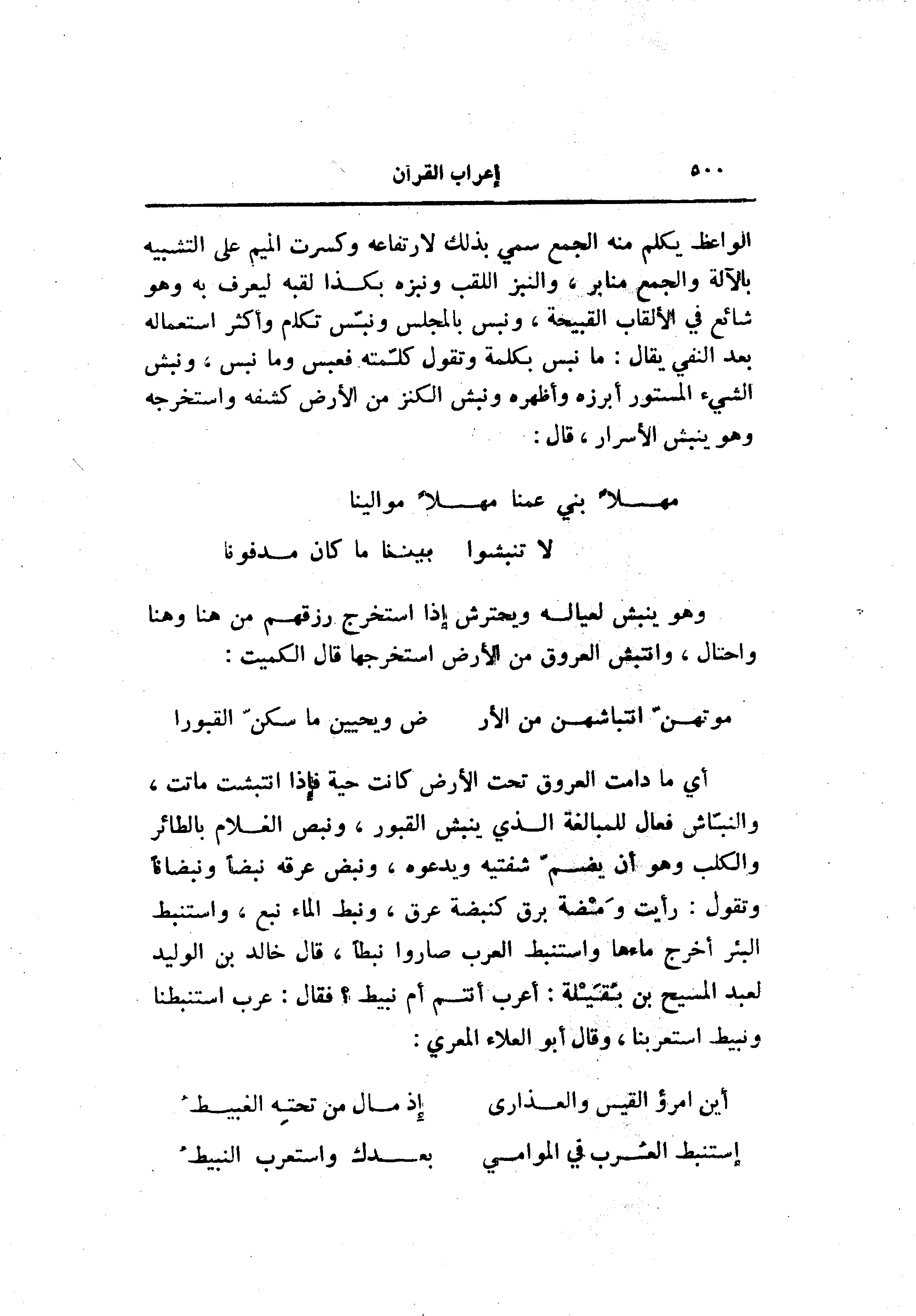 أي ما دامت العروق تحت الأرض كانت حية فإذا انتبشت ماتت، والنبّاش فعال للمبالغة الذي ينبش القبور، ونبص الغلام بالطائر والكلب وهو أن يضمّ شفتيه ويدعوه، ونبض عرقه نبضا ونبضانا وتقول: رأيت ومضة برق كنبضة عرق، ونبط الماء نبع، واستنبط البئر أخرج ماءها واستنبط العرب صاروا نبطا، قال خالد بن الوليد لعبد المسيح بن بقيلة: أعرب أنتم أم نبيط؟ فقال: عرب استنبطنا ونبيط استعربنا، وقال أبو العلاء المعري: