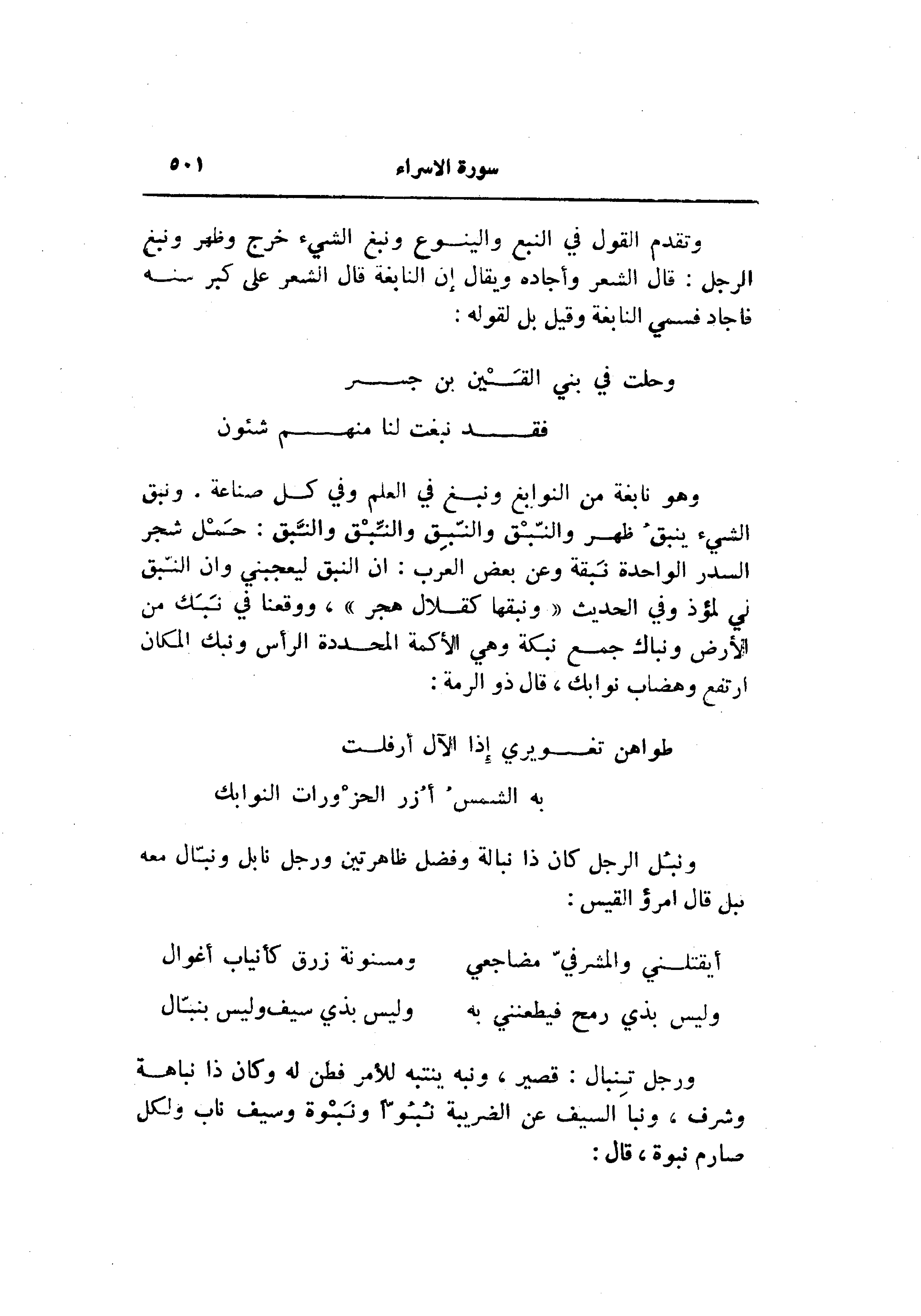 وهو نابغة من النوابغ ونبغ في العلم وفي كل صناعة. ونبق الشيء ينبق ظهر والنّبق والنّبق والنّبق والنّبق: حمل شجر السدر الواحدة نبقة وعن بعض العرب: ان النبق ليعجبني وان النّبق لي لمؤذ وفي الحديث «ونبقها كقلال هجر» ، ووقعنا في نبك من الأرض ونباك جمع نبكة وهي الأكمة المحددة الرأس ونبك المكان ارتفع وهضاب نوابك، قال ذو الرمة: