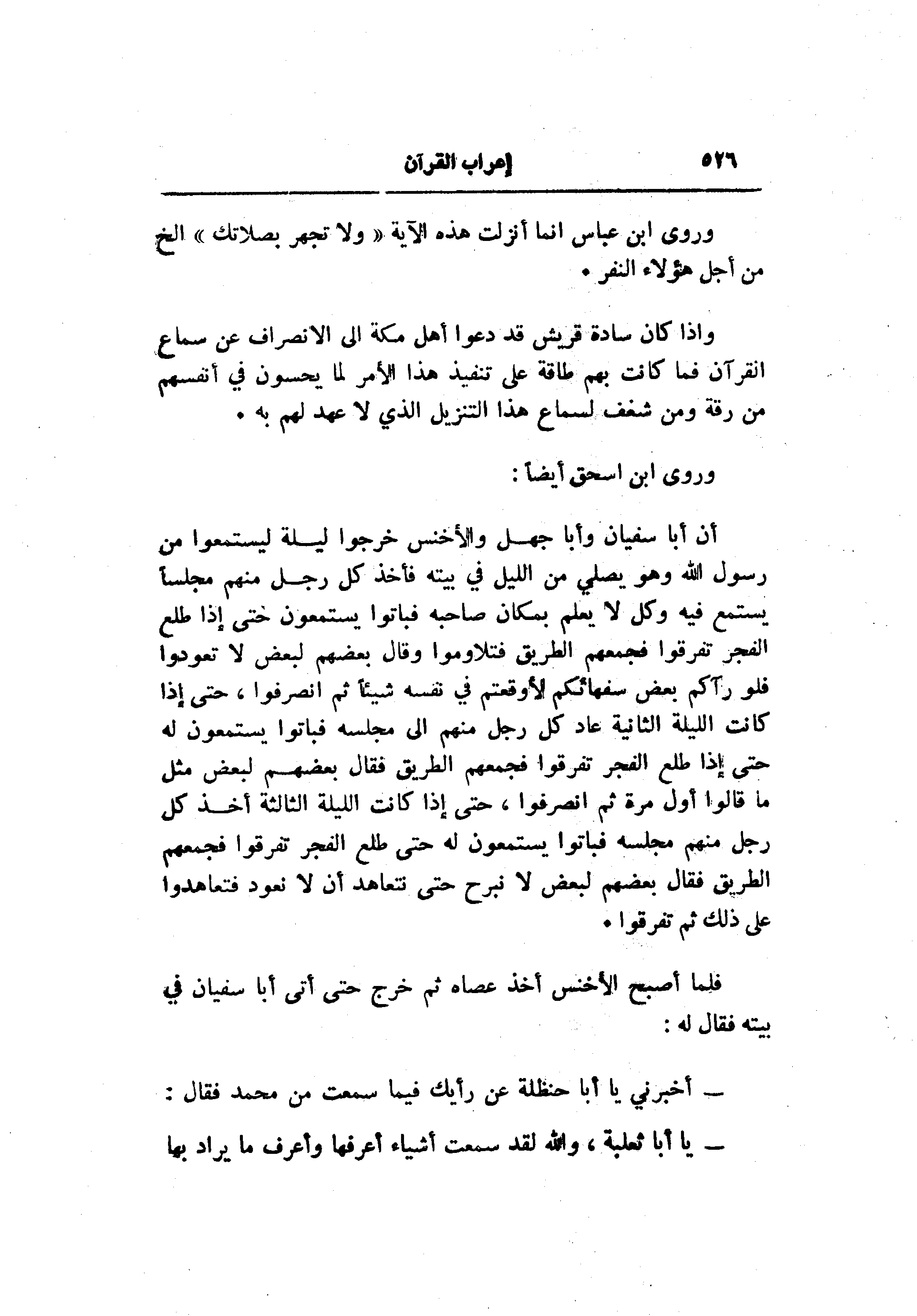 وروى ابن عباس انما أنزلت هذه الآية «ولا تجهر بصلاتك» إلخ من أجل هؤلاء النفر.