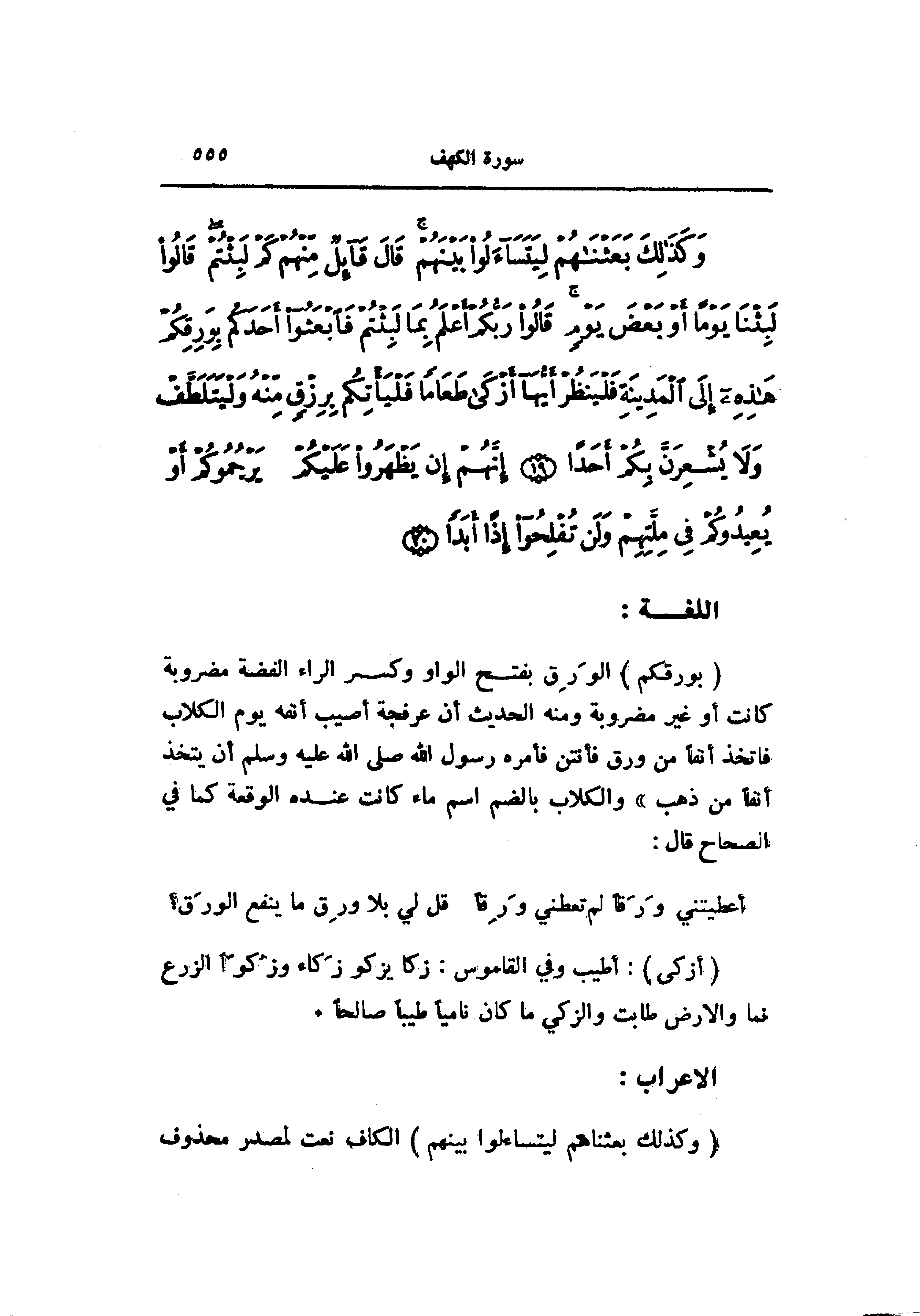 (بِوَرِقِكُمْ) الورق بفتح الواو وكسر الراء الفضة مضروبة كانت أو غير مضروبة ومنه الحديث أن عرفجة أصيب أنفه يوم الكلاب فاتخذ أنفا من ورق فأنتن فأمره رسول الله صلى الله عليه وسلم أن يتخذ أنفا من ذهب» والكلاب بالضم اسم ماء كانت عنده الوقعة كما في الصحاح قال: