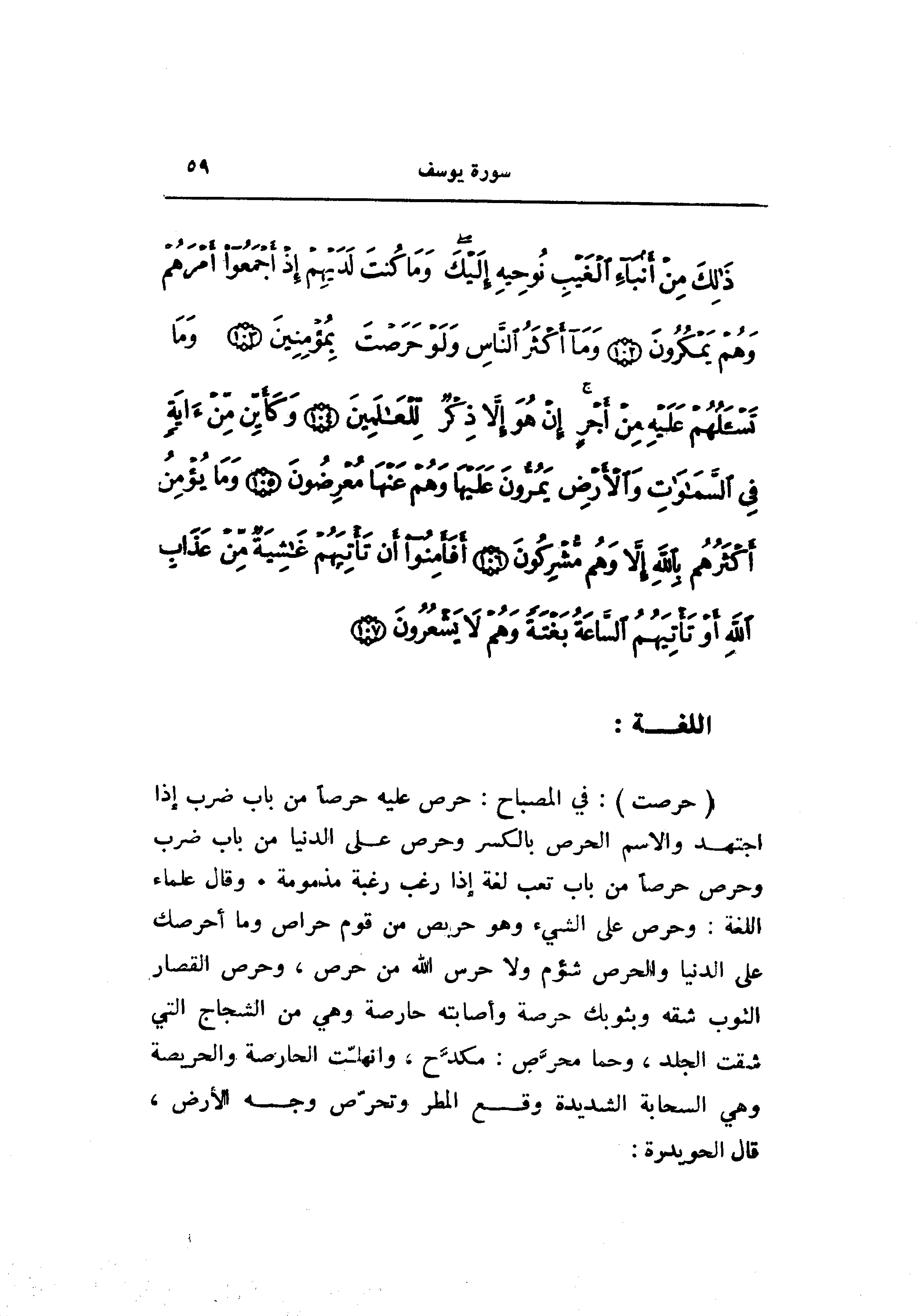 (حَرَصْتَ) : في المصباح: حرص عليه حرصا من باب ضرب إذا اجتهد والاسم الحرص بالكسر وحرص على الدنيا من باب ضرب وحرص حرصا من باب تعب لغة إذا رغب رغبة مذمومة. وقال علماء اللغة: وحرص على الشيء وهو حريص من قوم حراص وما أحرصك على الدنيا والحرص شؤم ولا حرس الله من حرص، وحرص القصار الثوب شقه وبثوبك حرصة وأصابته حارصة وهي من الشجاج التي شقت الجلد، وحما محرّص: مكدّح، وانهلّت الحارصة والحريصة وهي السحابة الشديدة وقع المطر وتحرّص وجه الأرض،