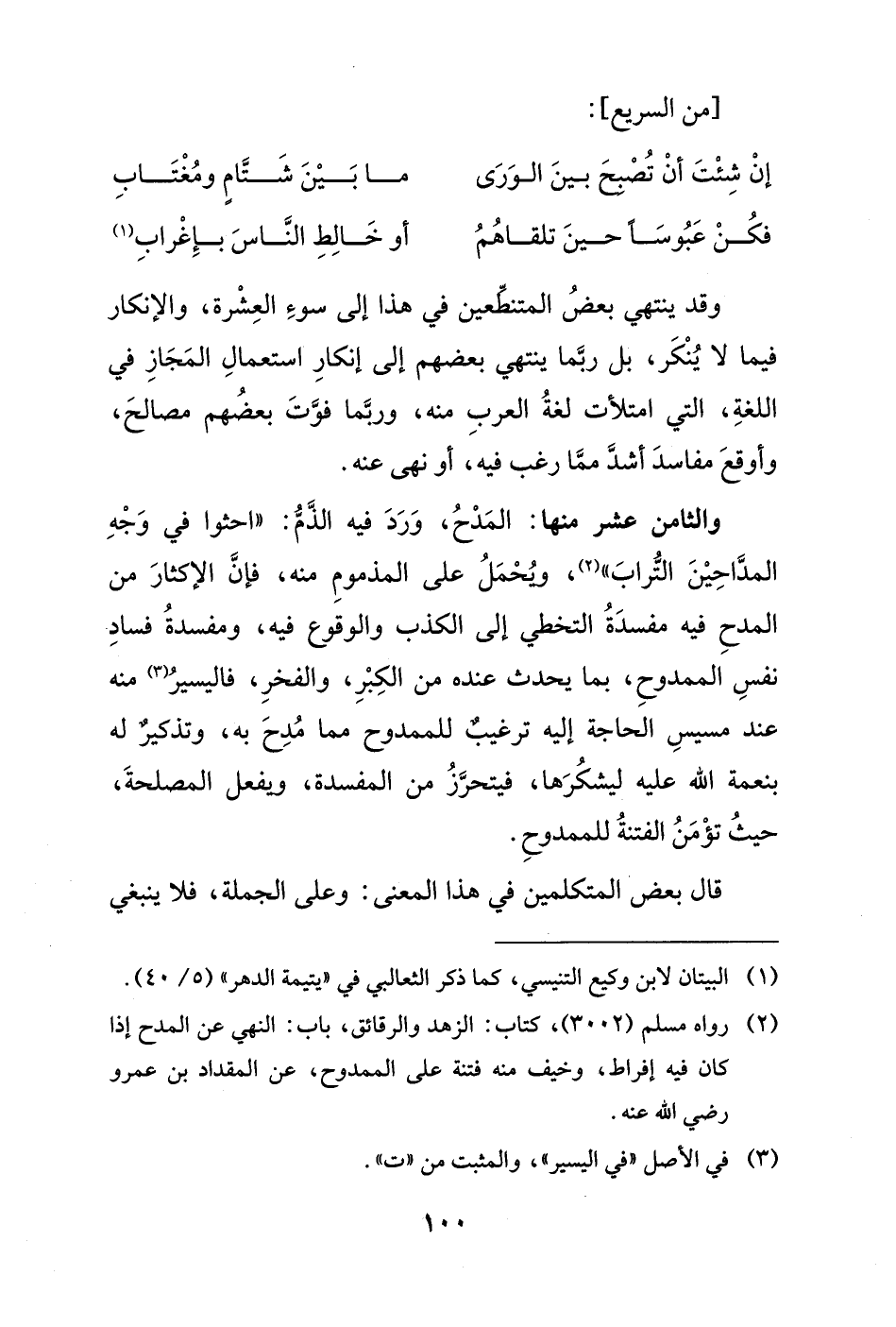 (¬2) رواه مسلم (3002)، كتاب: الزهد والرقائق، باب: النَّهي عن المدح إذا كان فيه إفراط، وخيف منه فتنة على الممدوح، عن المقداد بن عمرو رضي الله عنه.