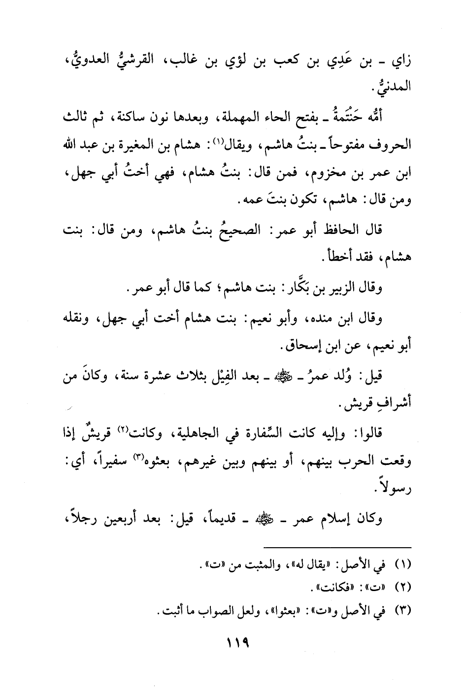 أمُّه حَنْتَمةُ - بفتح الحاء المهملة، وبعدها نون ساكنة، ثم ثالث الحروف مفتوحًا - بنتُ هاشم، ويقال (¬1): هشام بن المغيرة بن عبد الله ابن عمر بن مخزوم، فمن قال: بنتُ هشام، فهي أختُ أبي جهل، ومن قال: هاشم، تكون بنتَ عمه.