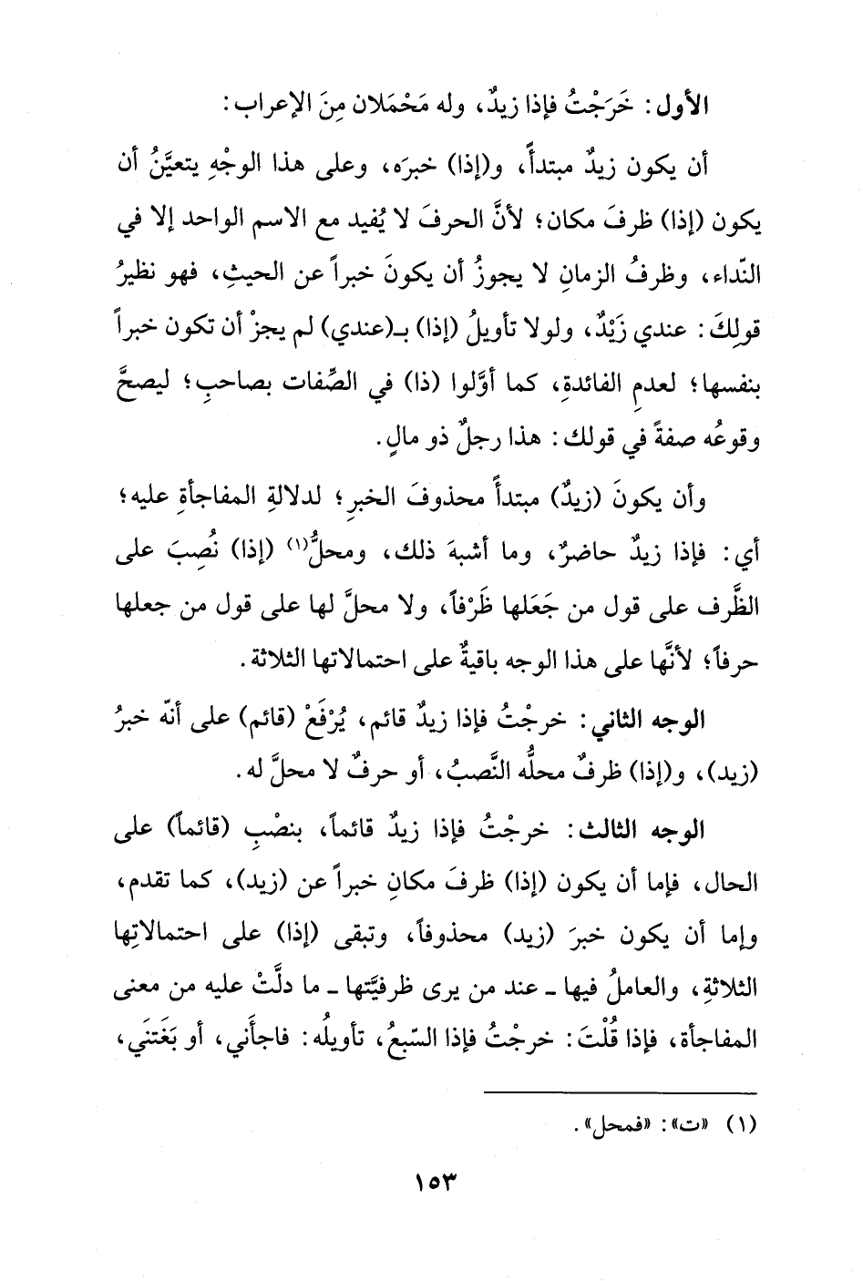 الوجه الثاني: خرجْتُ فإذا زيدٌ قائم، يُرْفَعْ (قائم) على أنّه خبرُ (زيد)، و (إذا) ظرفٌ محلُّه النَّصبُ، أو حرفٌ لا محلَّ له.