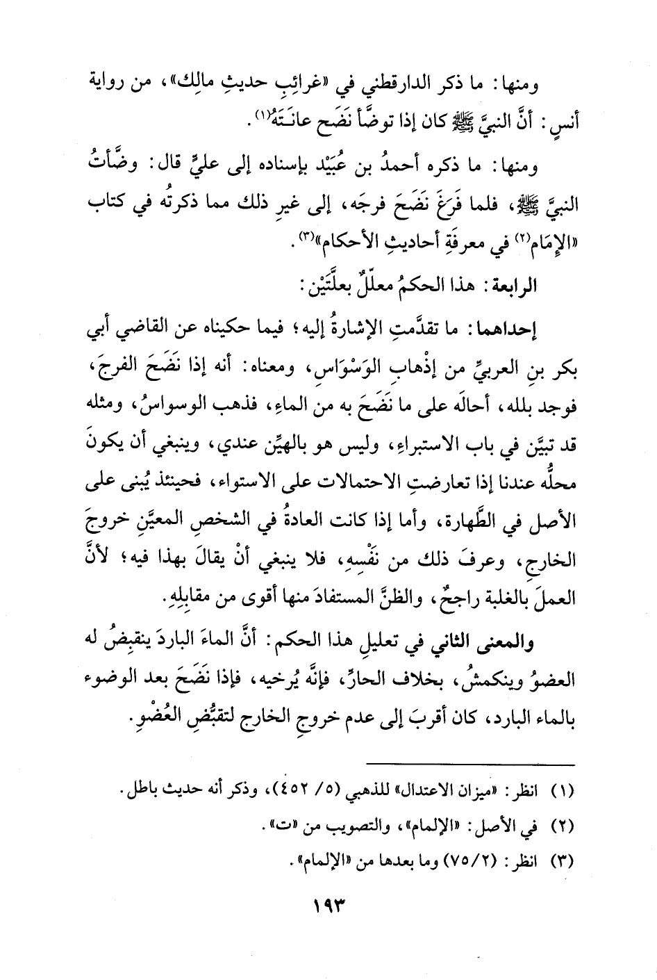 ومنها: ما ذكره أحمدُ بن عُبَيْد بإسناده إلى عليٍّ قال: وضَّأتُ النبيَّ - صلى الله عليه وسلم -، فلما فَرَغَ نَضَحَ فرجَه، إلى غيرِ ذلك مما ذكرتُه في كتاب "الإِمَام (¬2) في معرفَةِ أحاديثِ الأحكام" (¬3).