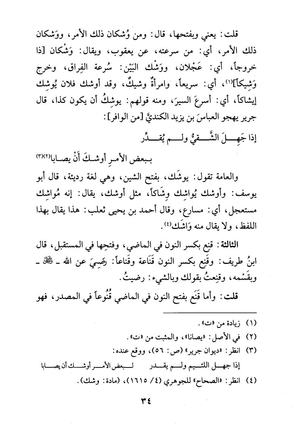 (¬4) انظر: "الصحاح" للجوهري (4/ 1615)، (مادة: وشك).