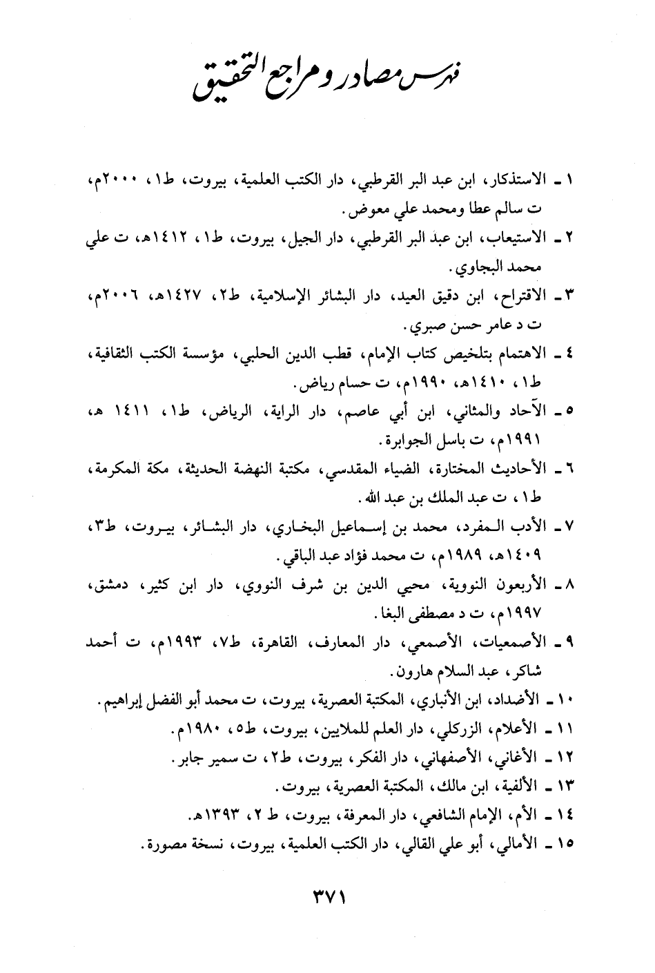 1 - الاستذكار، ابن عبد البر القرطبي، دار الكتب العلمية، بيروت، ط 1، 2000 م، ت سالم عطا ومحمد علي معوض.
