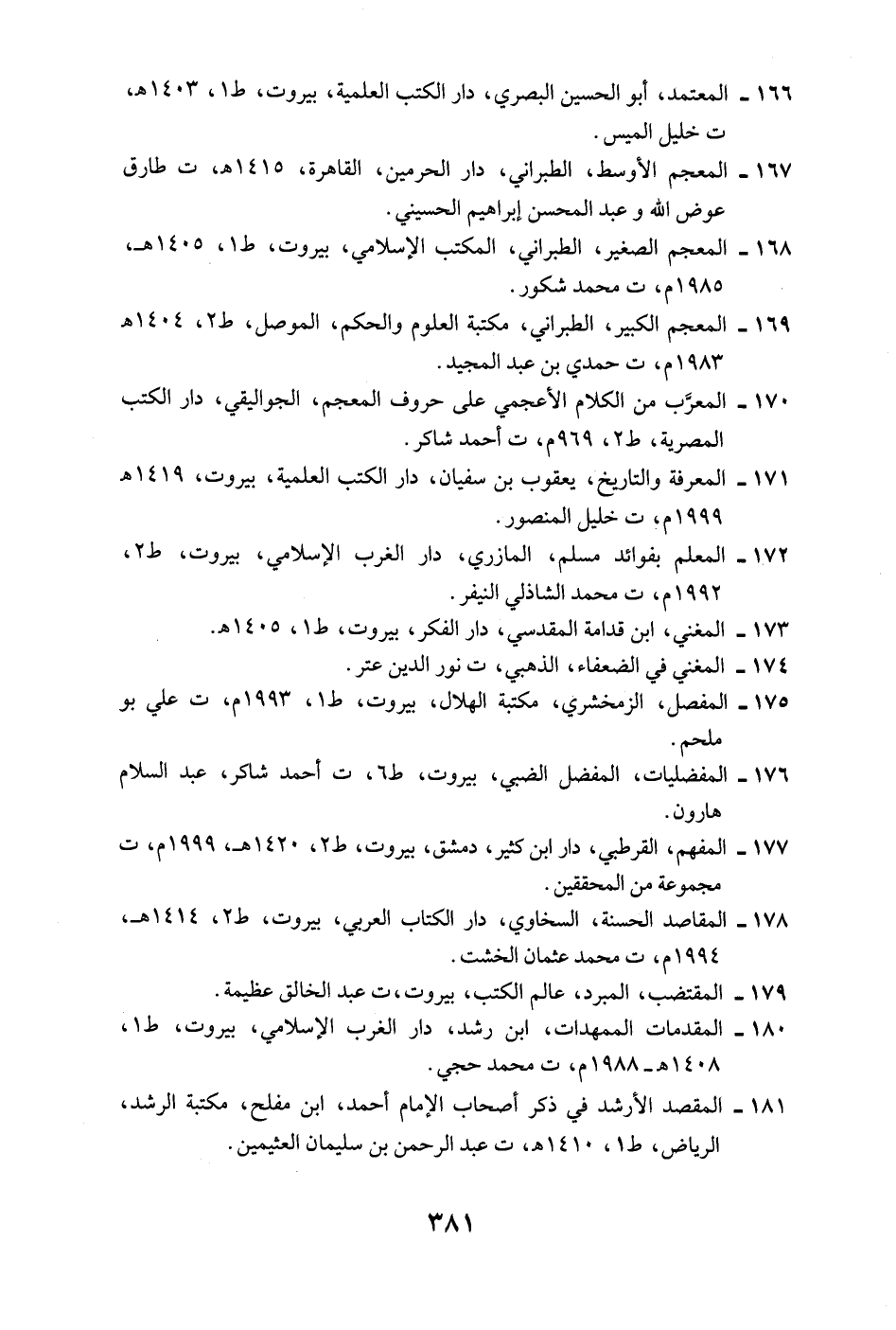 166 - المعتمد، أبو الحسين البصري، دار الكتب العلمية، بيروت، ط 1، 1403 هـ، ت خليل الميس.