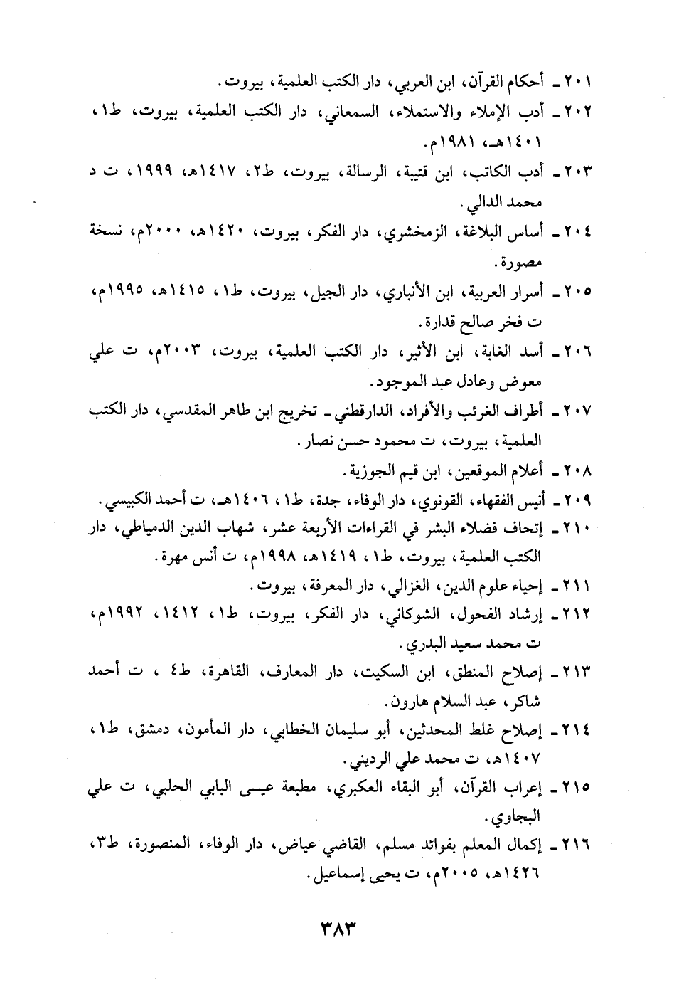 202 - أدب الإملاء والاستملاء، السمعاني، دار الكتب العلمية، بيروت، ط 1، 1401 - هـ، 1981 م.