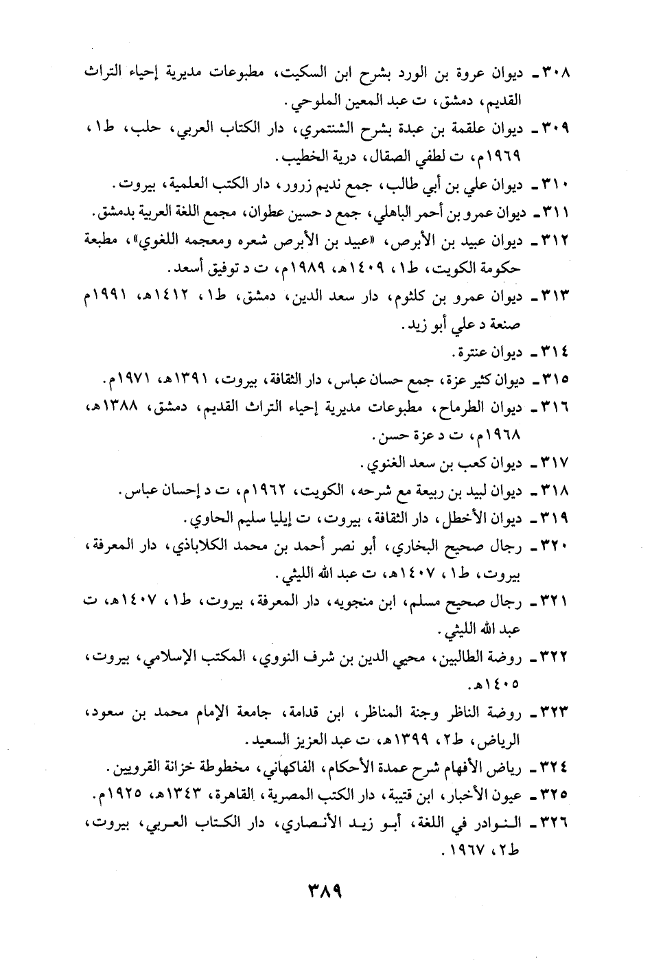 308 - ديوان عروة بن الورد بشرح ابن السكيت، مطبوعات مديرية إحياء التراث القديم، دمشق، ت عبد المعين الملوحي.