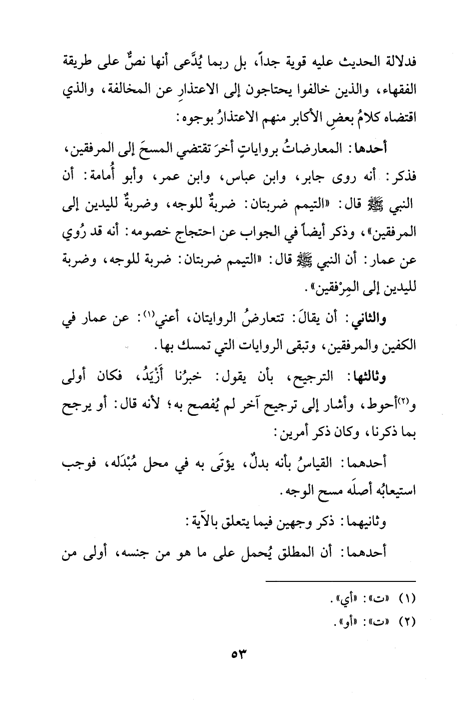 والثاني: أن يقالَ: تتعارضُ الروايتان، أعني (¬1): عن عمار في الكفين والمرفقين، وتبقى الروايات التي تمسك بها.