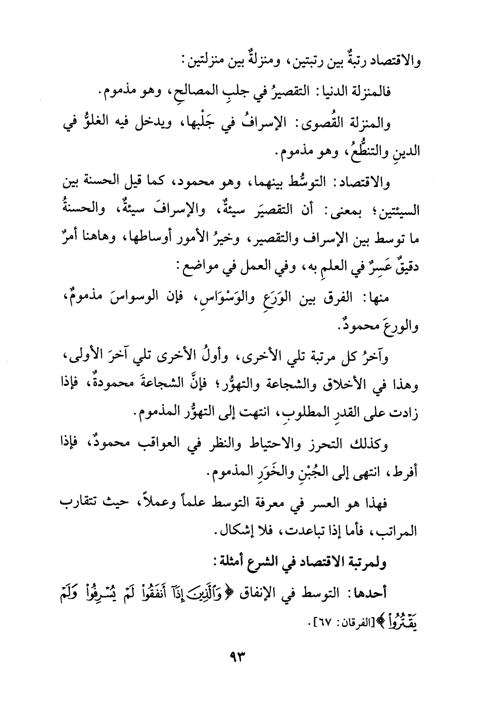 والاقتصاد رتبةٌ بين رتبتين، ومنزلةٌ بين منزلتين: