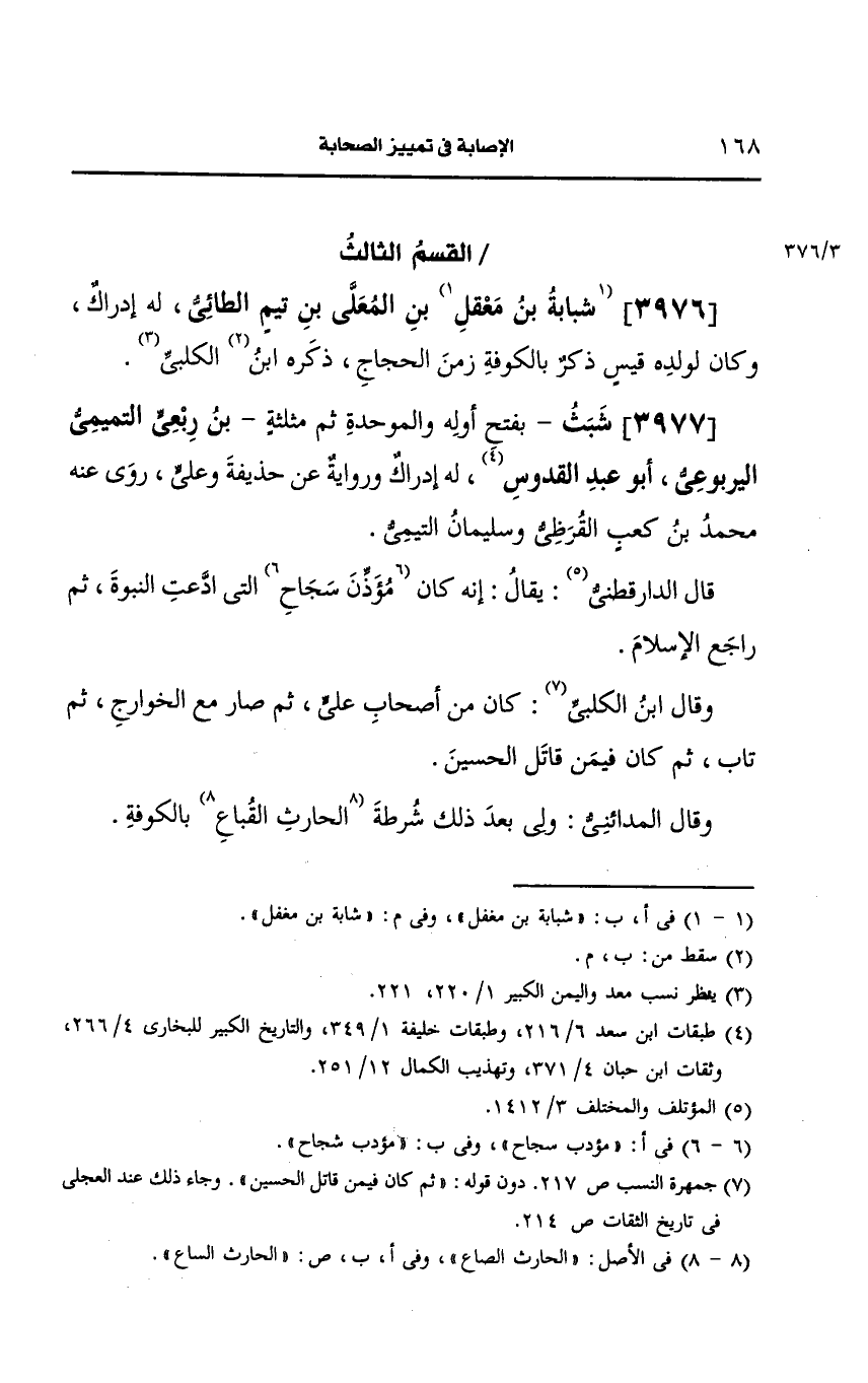 3976- (ز) شابة بن مغفل بن المعلى بن تيم الطائي.