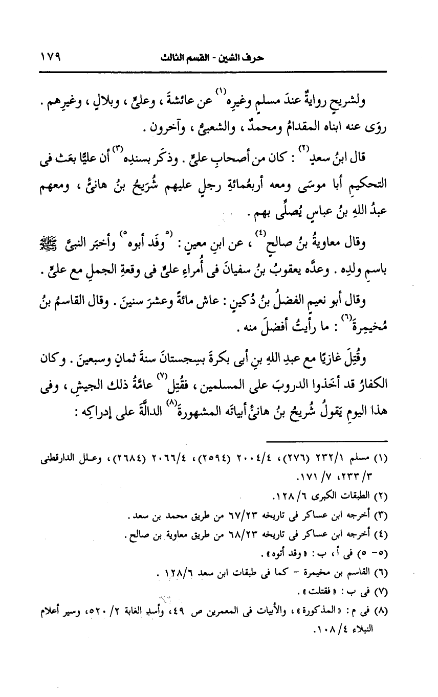 ولشريح رواية عند مسلم وغيره، عَن عائشة وعلي وبلال وغيرهم.