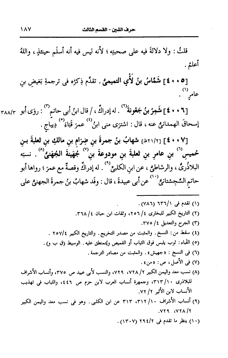 4007- (ز) شهاب بن جمرة بن ضرام بن مالك بن ثعلبة بن جهيش بن عامر بن ثعلبة بن مودوعة بن جهينة الجهني.