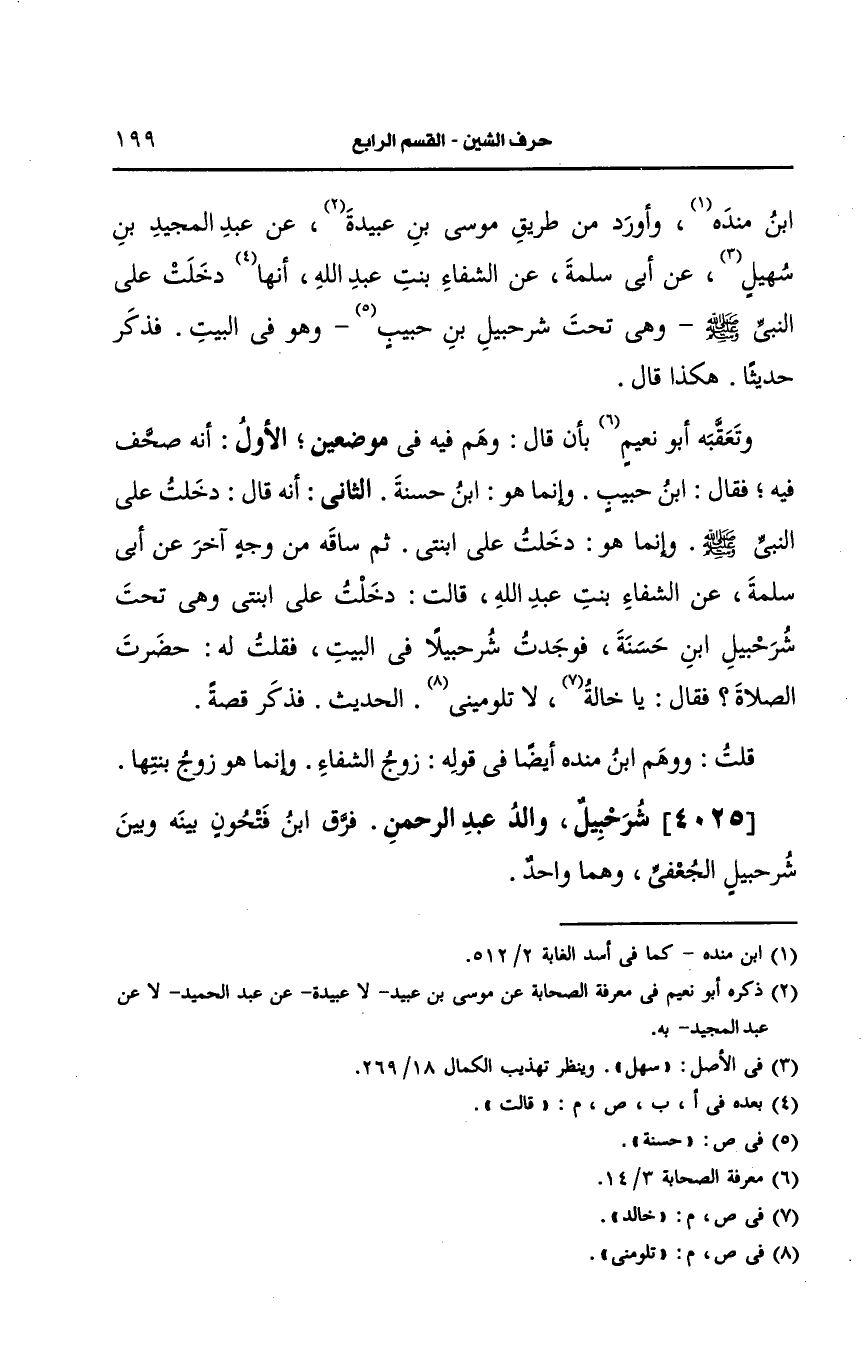 4025- شرحبيل والد عبد الرحمن فرق ابن فتحون بينه وبين شرحبيل الجعفي وهما واحد.