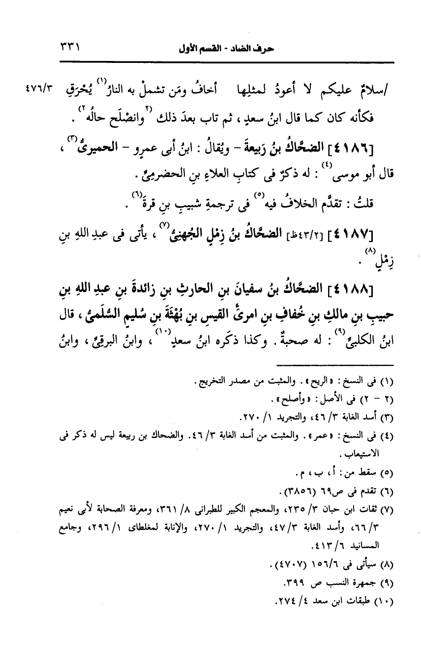 4188- الضحاك بن سفيان بن الحارث بن زائدة بن عَبد الله بن حبيب بن مالك بن خفاف بن امرئ القيس بن بهثة بن سليم السلمي.