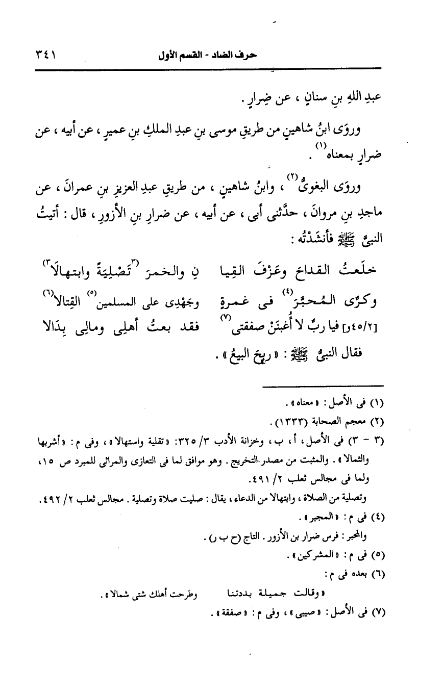ورَوَى ابنُ شَاهِين من طريق موسى بن عبد الملك بن عمير، عَن أَبيه، عَن ضرار بمعناه.