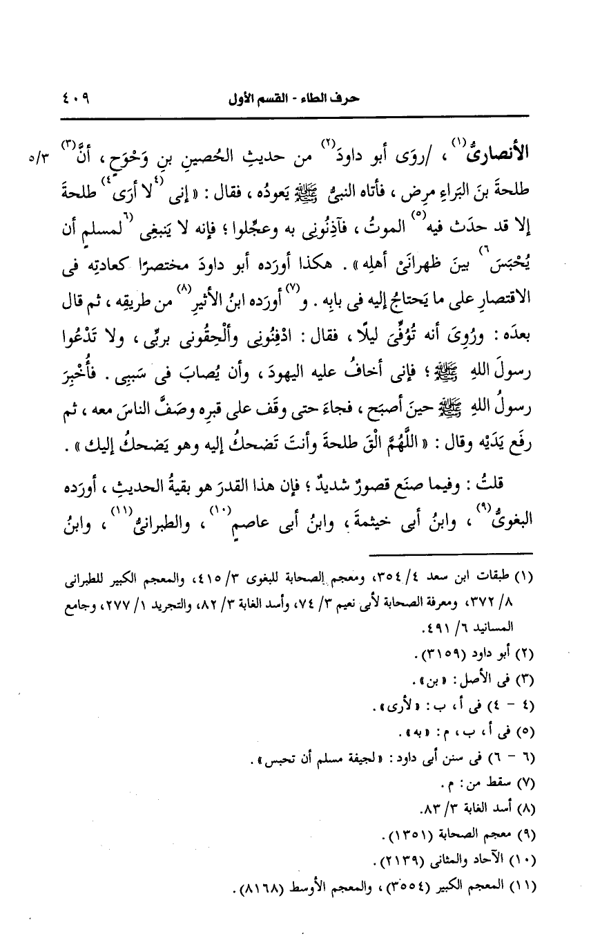 وروى أَبو داود من حديث الحصين بن وحوح أن طلحة بن البراء مرض فأتاه
