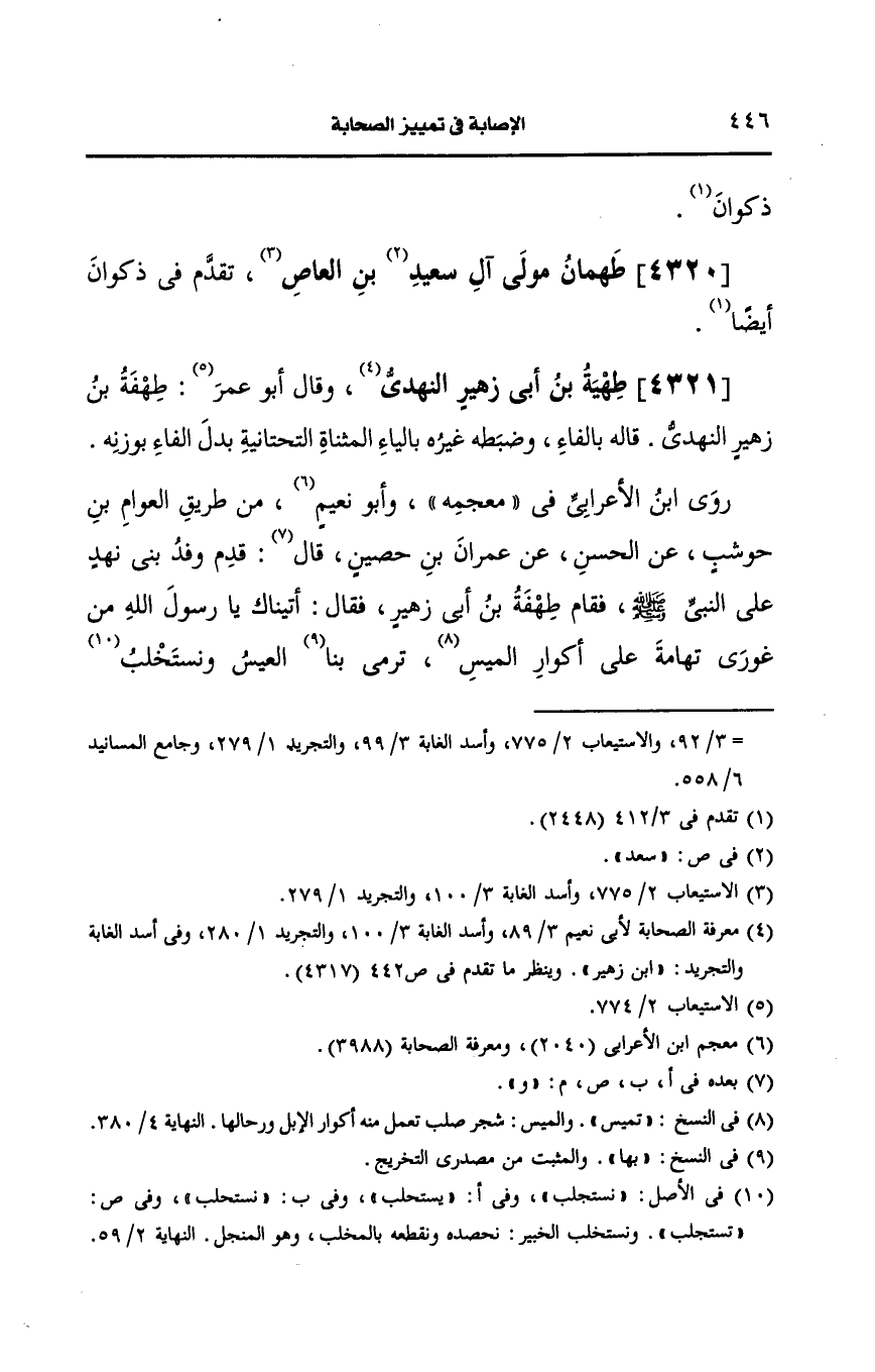 وقال أَبو عُمَر طهفة بن زهير النهدي قاله بالفاء وضبطه غيره بالياء المثناة التحتانية بدل الفاء بوزنه.