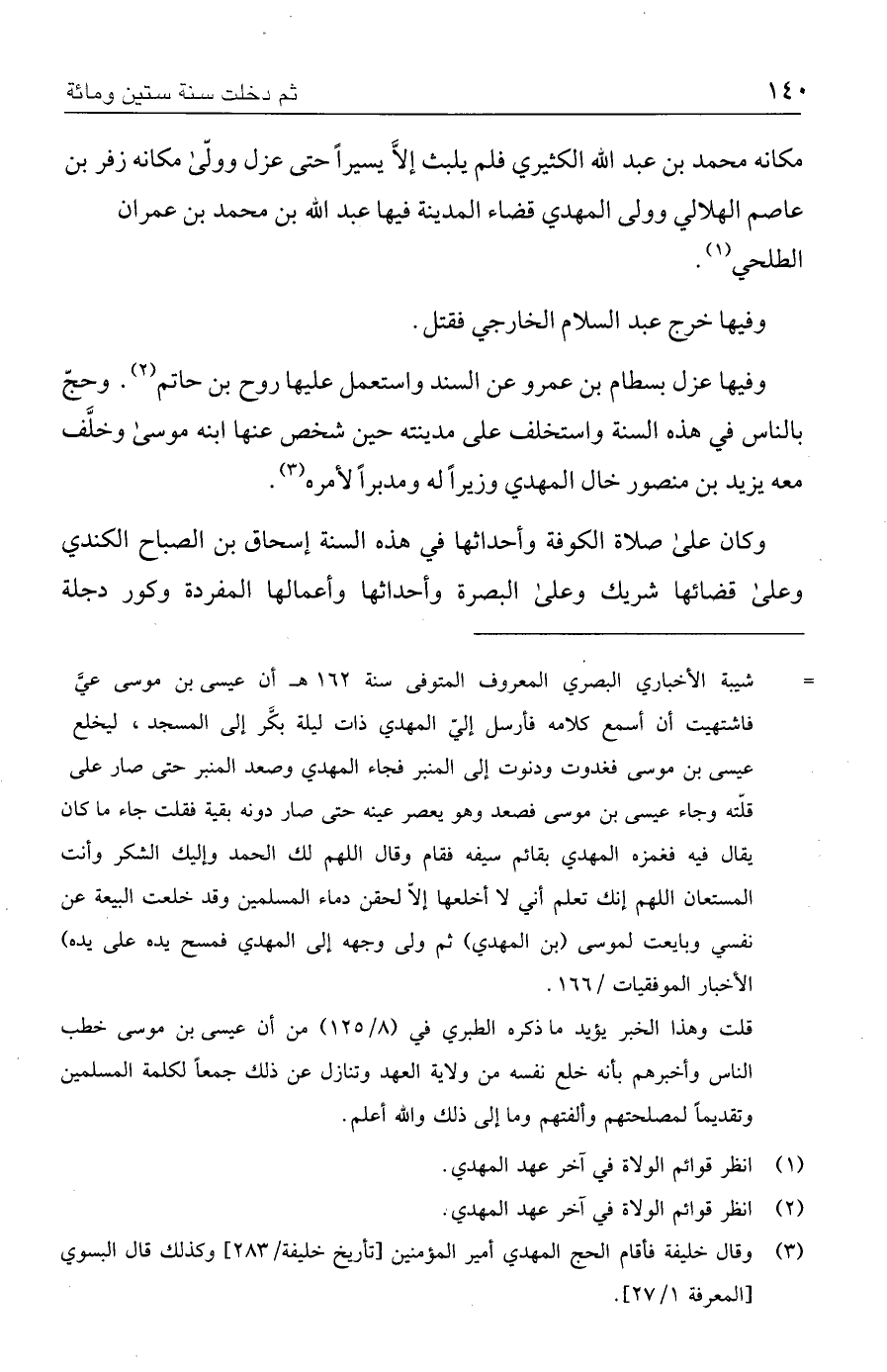 (٣) وقال خليفة فأقام الحج المهدي أمير المؤمنين [تأريخ خليفة / ٢٨٣] وكذلك قال البسوي [المعرفة ١/ ٢٧].